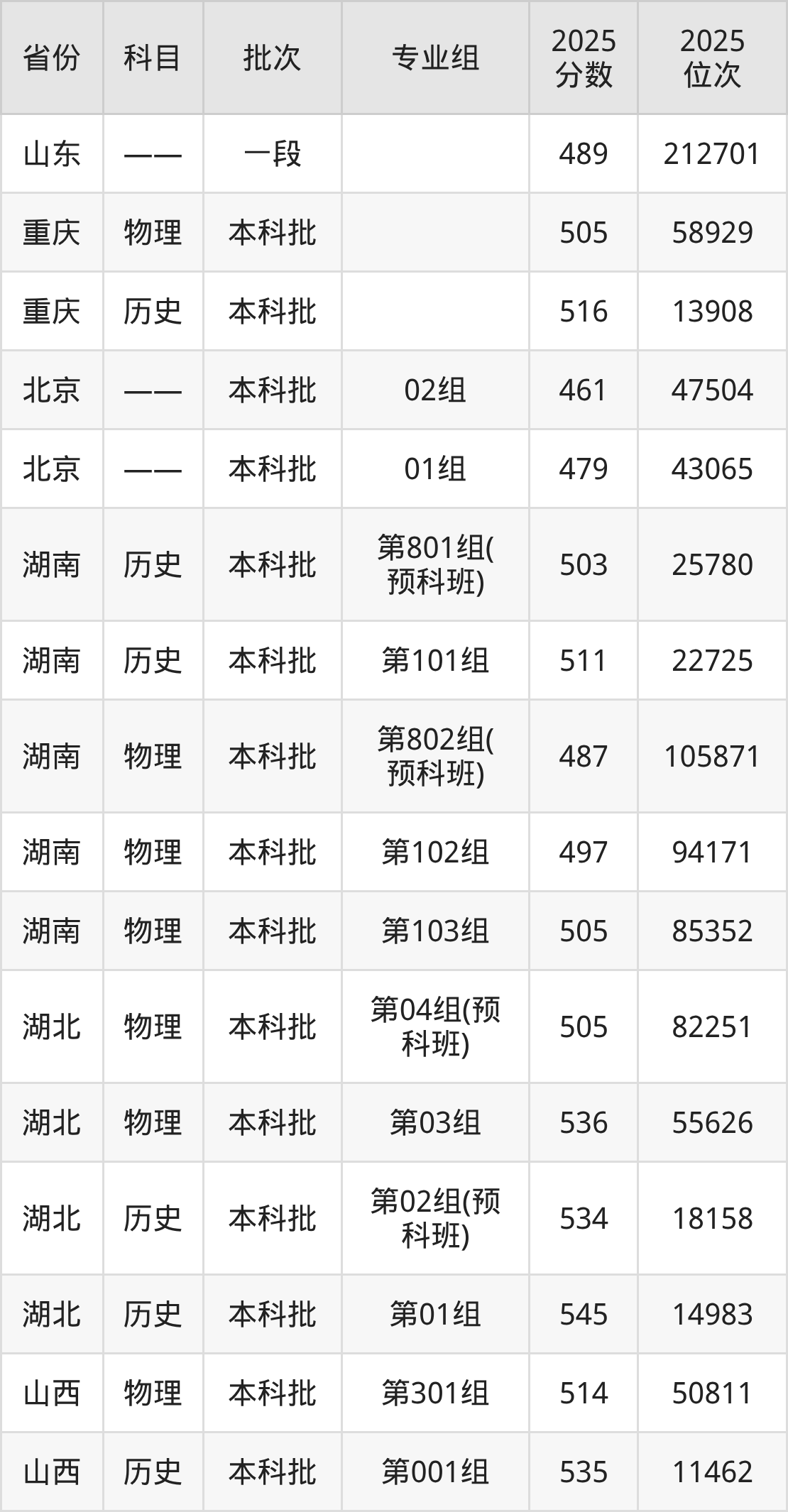 预科班:2025年投档录取最低分为506分。