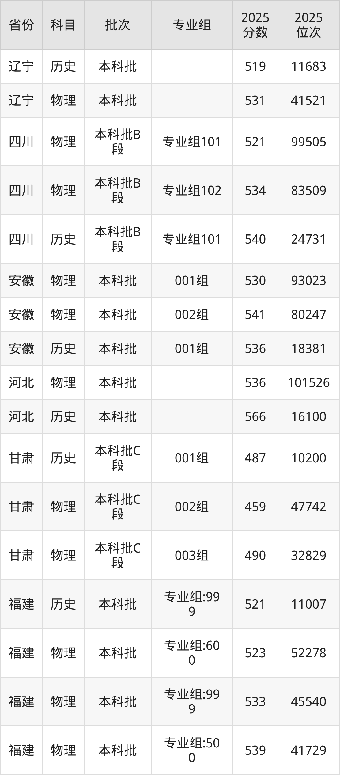 普通类本科物理类最低471分,本科历史类最低516分