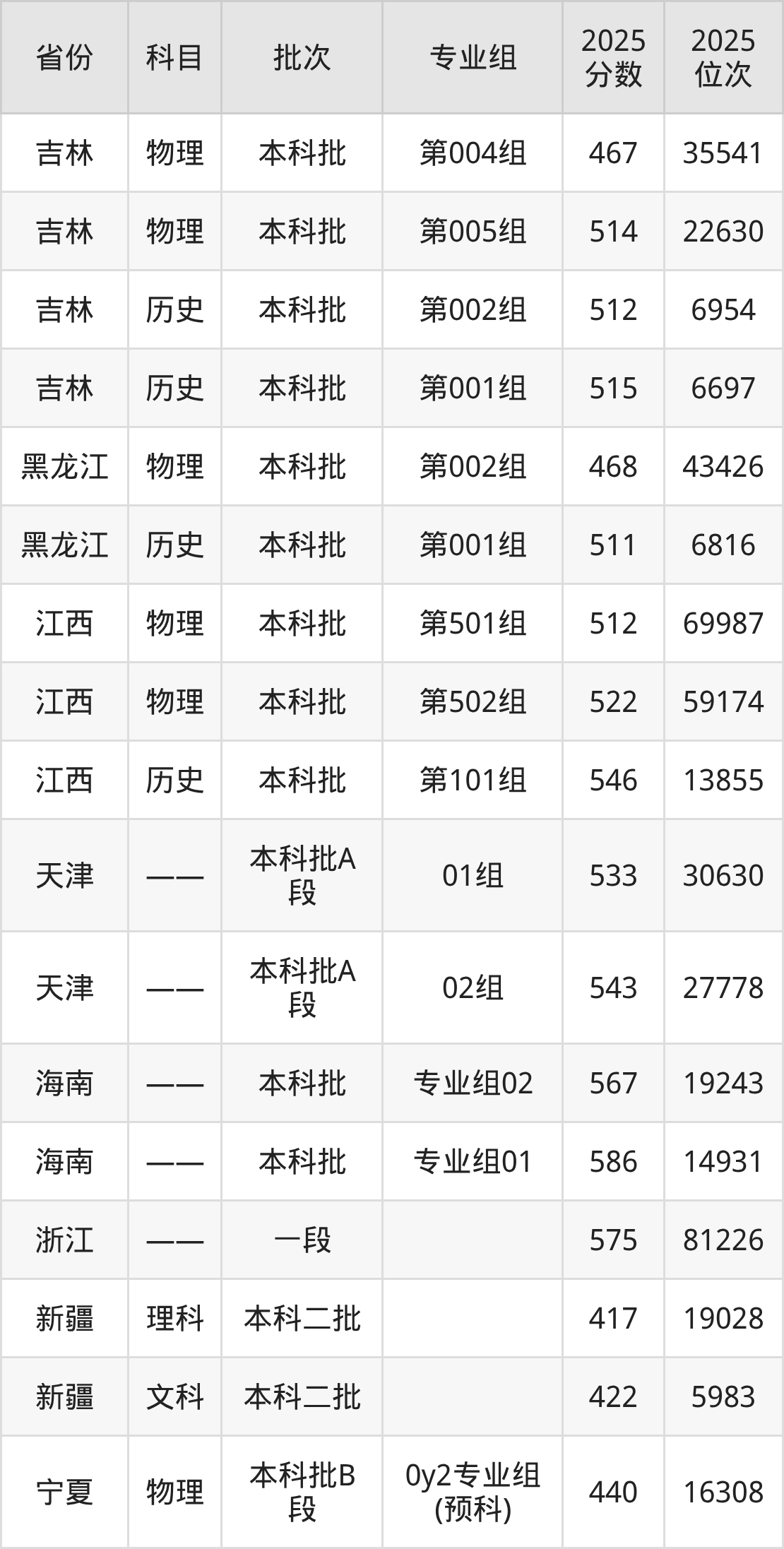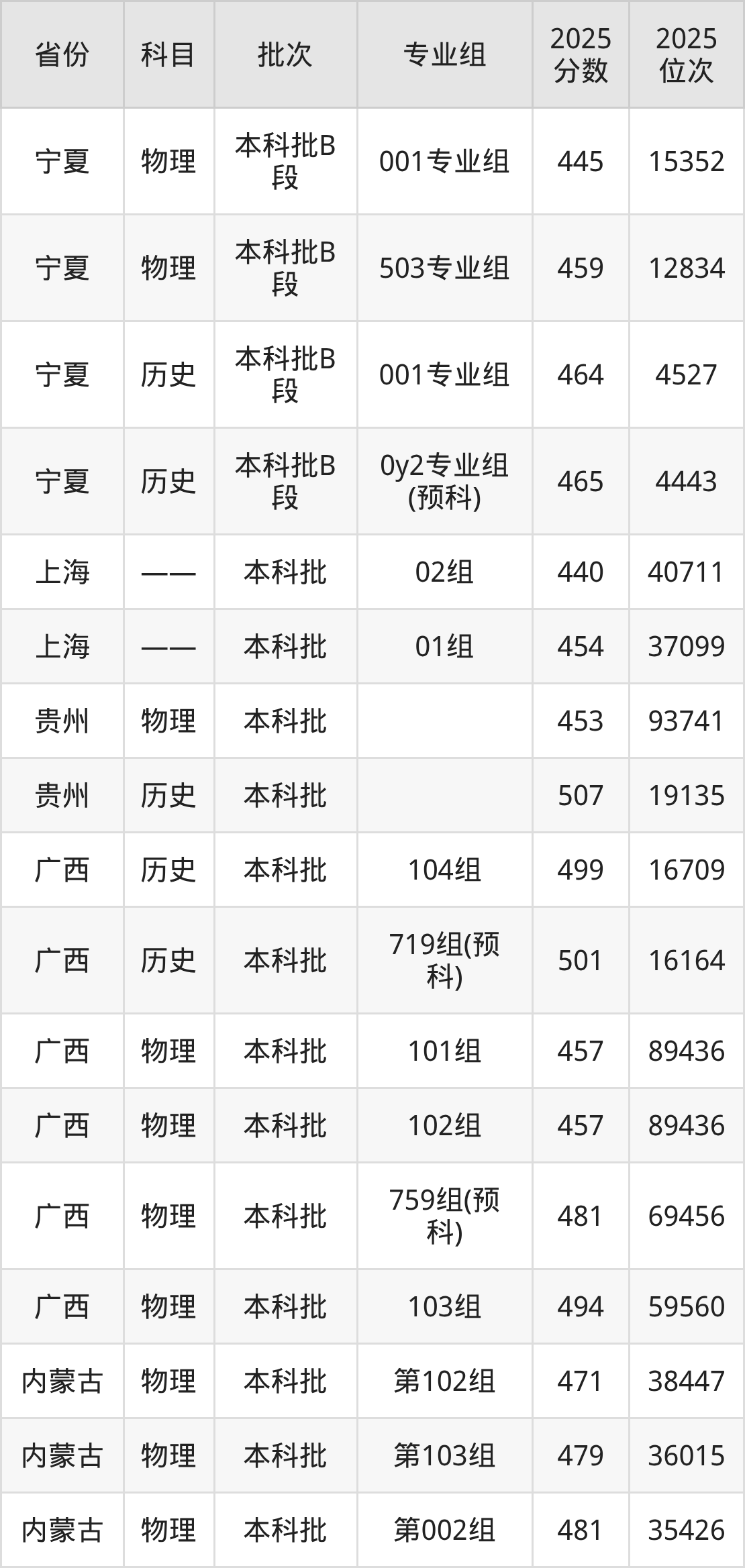 普通类本科物理类最低440分,本科历史类最低464分