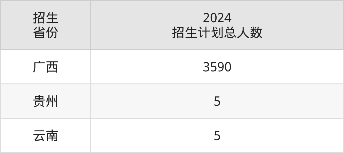 2024年广西工商职业技术学院面向全国3个省市开展专科招生;招生专业共43个,招生人数共3600人。2024年在广西壮族自治区招生计划总人数是3590人,其中,广西工商职业技术学院在广西壮族自治区招生人数最多的是大数据与会计。广西工商职业技术学院在各省具体招生人数情况如下表。