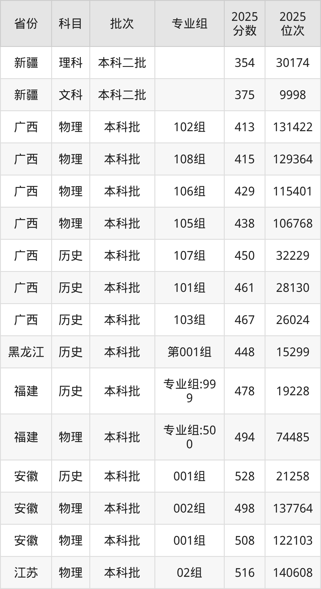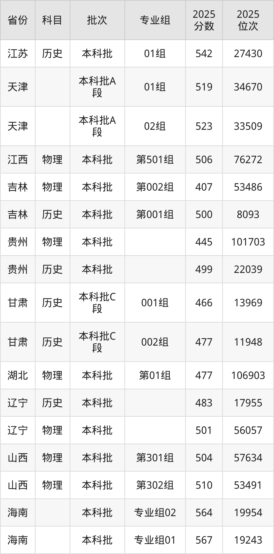 2025年在本科物理类进行招生,各专业组分数线详情如下: