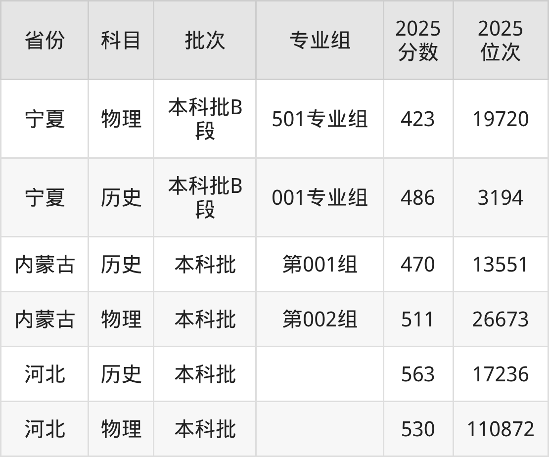 2025年在本科历史类进行招生,各专业组分数线详情如下: