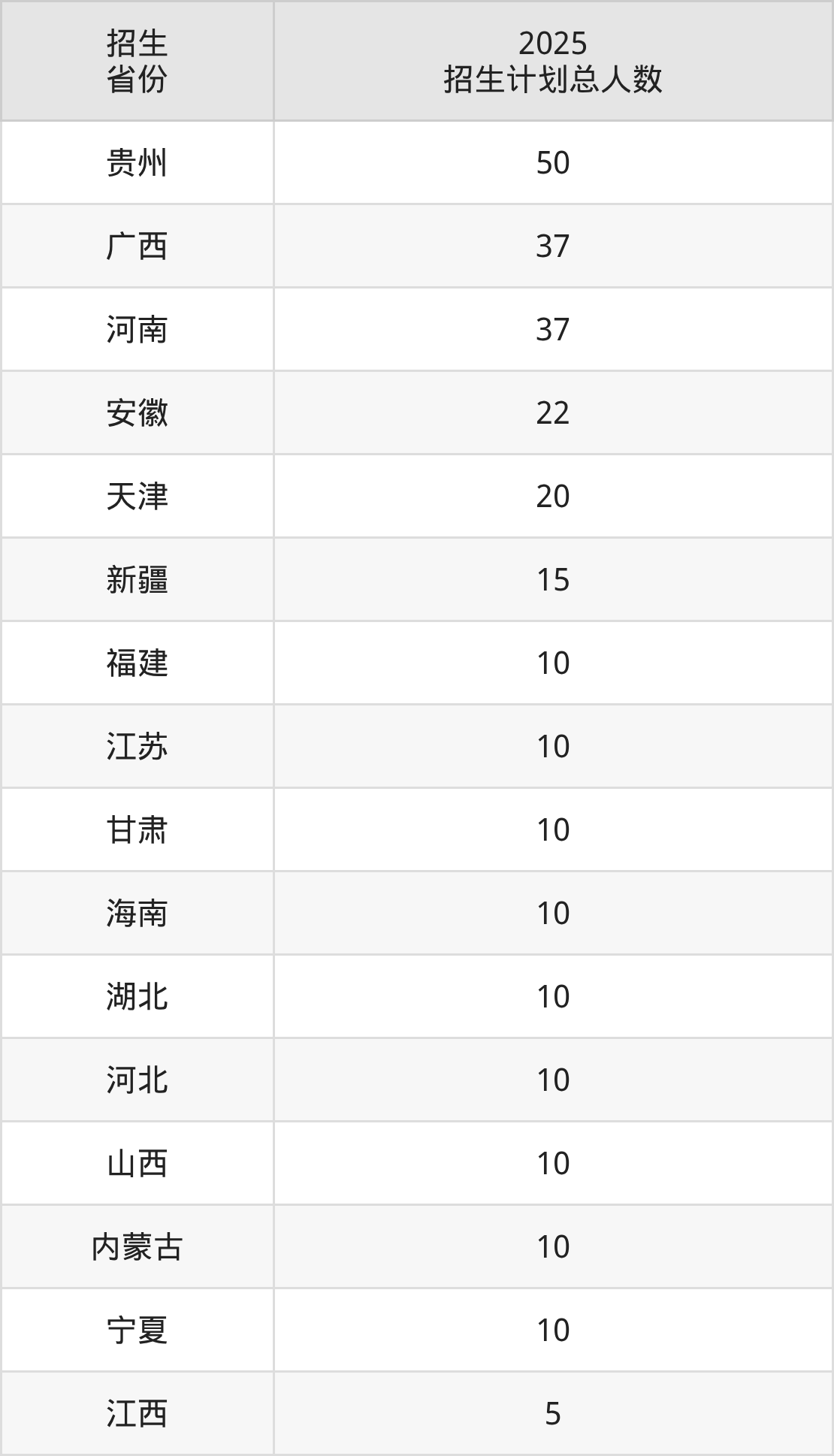 2025年德州学院面向全国19个省市开展本科招生;招生专业共23个,招生人数共291人。德州学院在各省具体招生人数情况如下表。