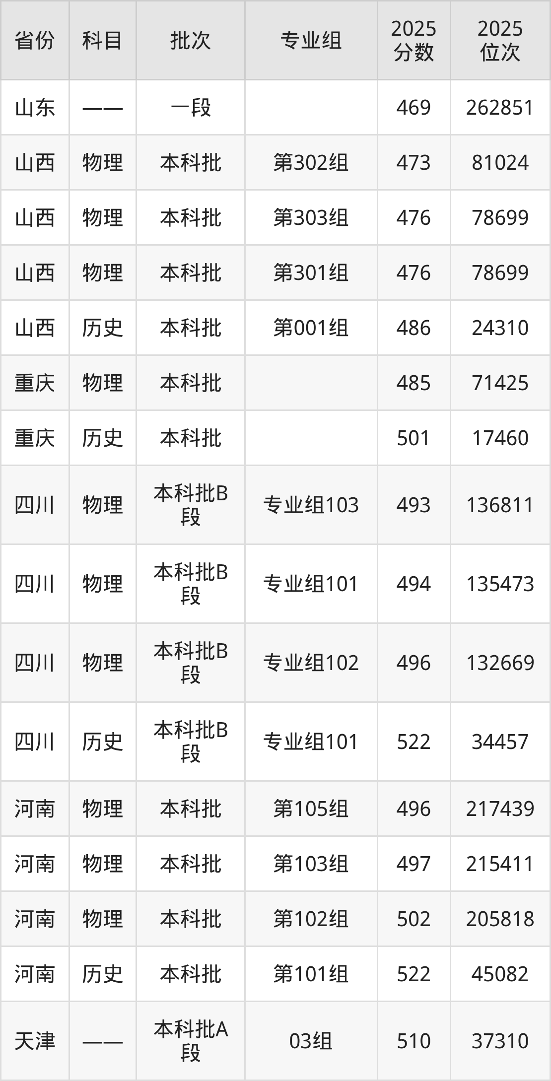 普通类本科物理类最低487分,本科历史类最低481分