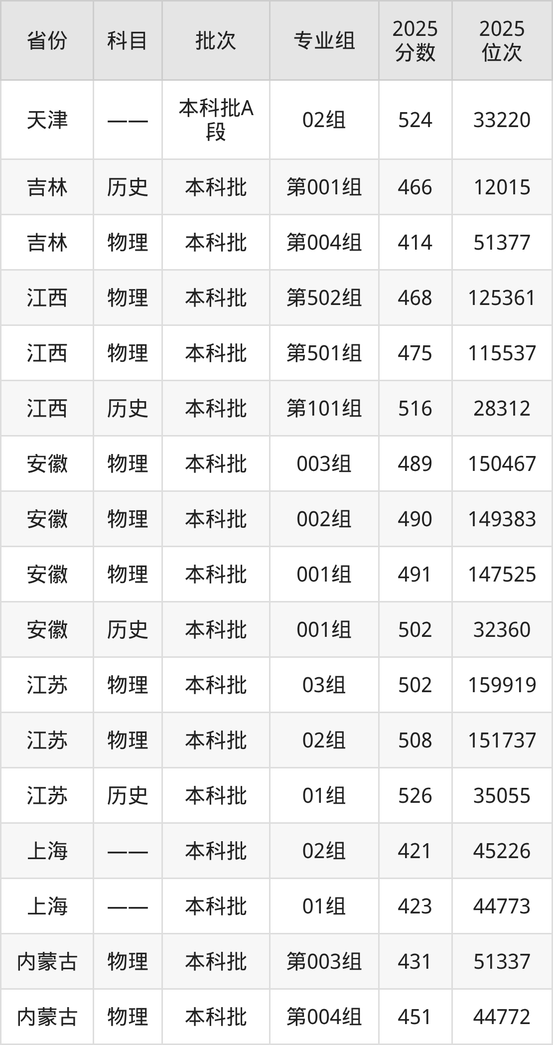 普通类本科物理类最低491分,本科历史类最低517分