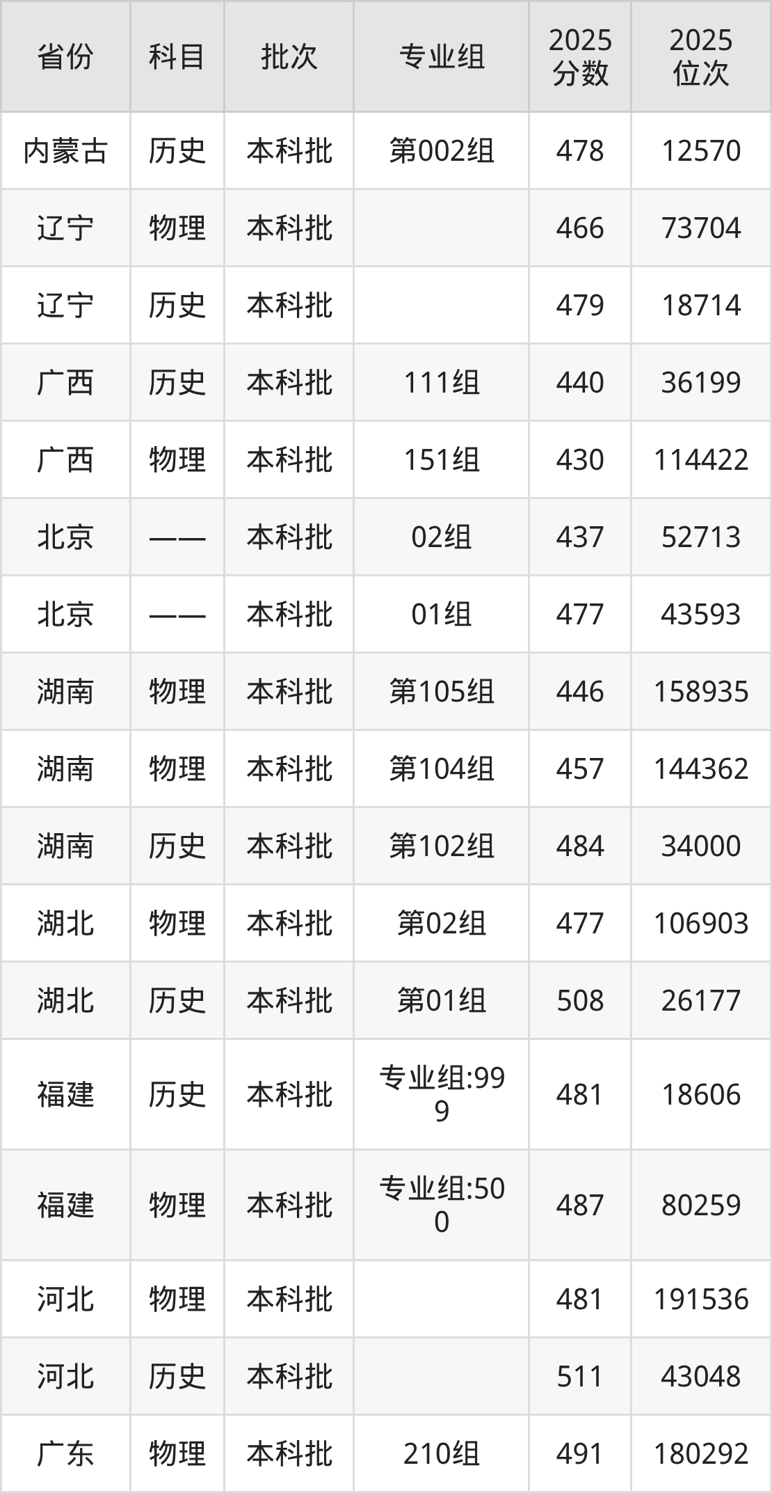 普通类本科物理类最低477分,本科历史类最低508分