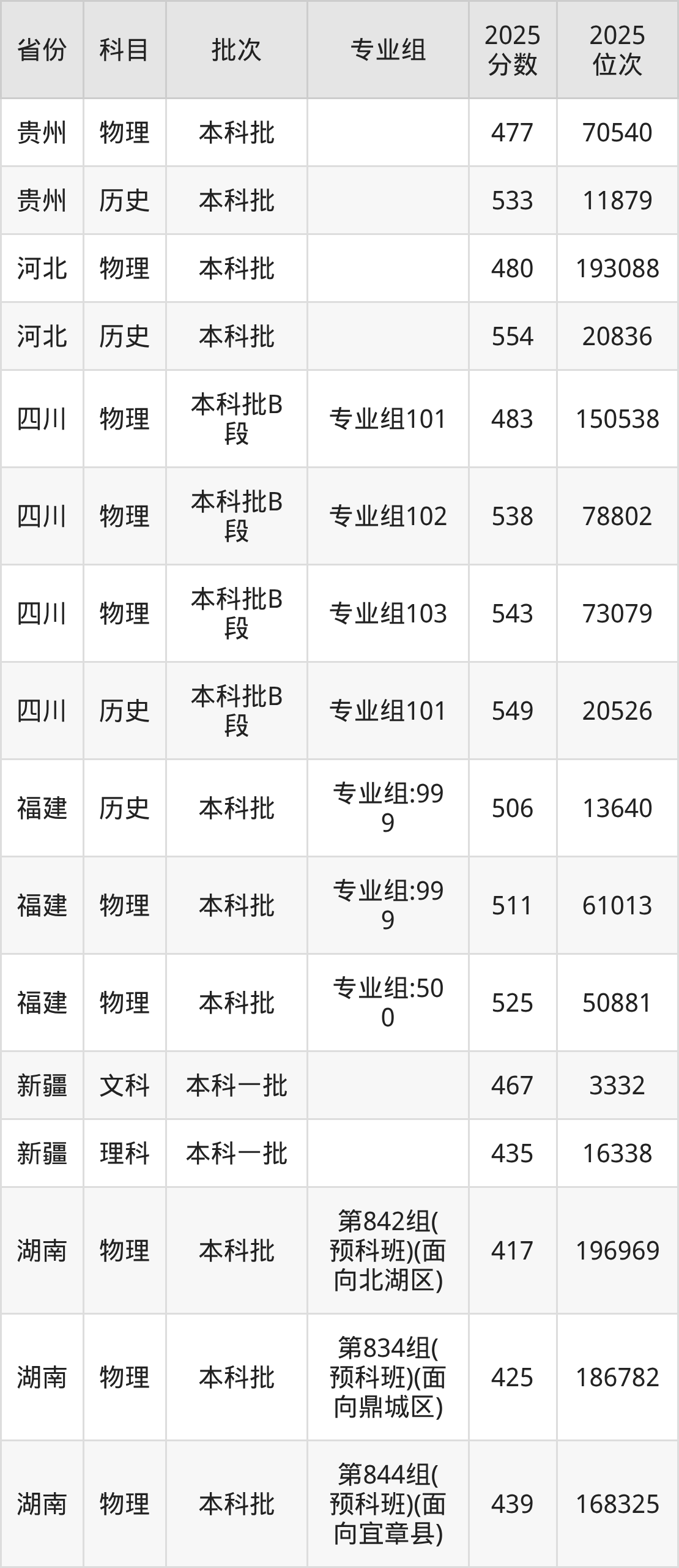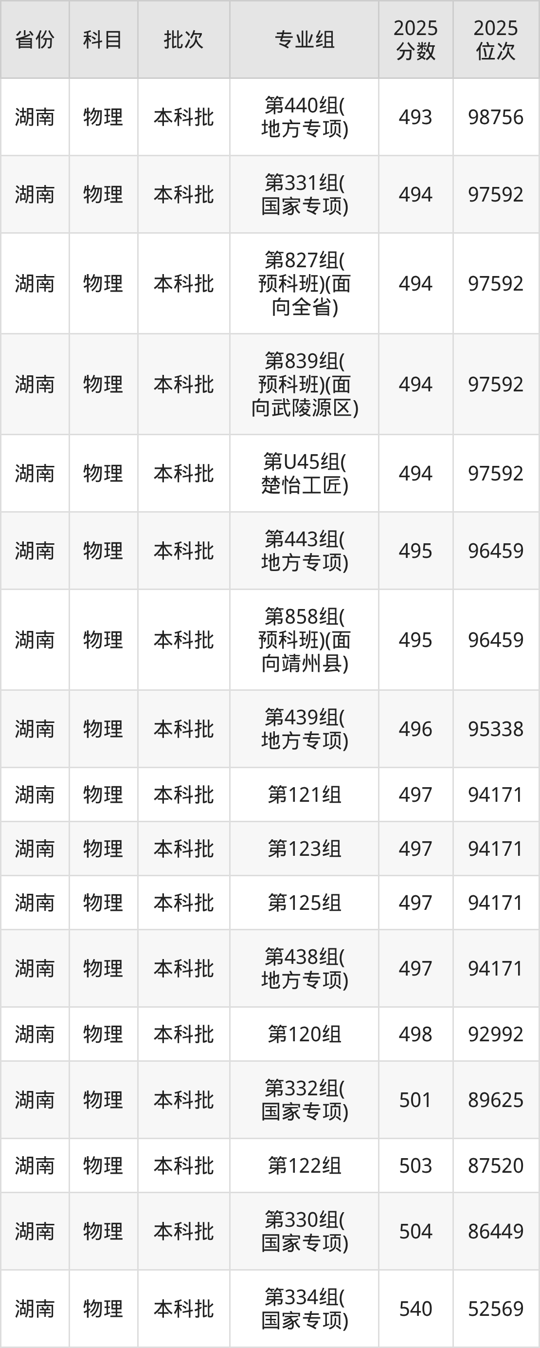 湖南工业大学第001组:2025年投档录取最低分为494分,录取最低位次为8819名。