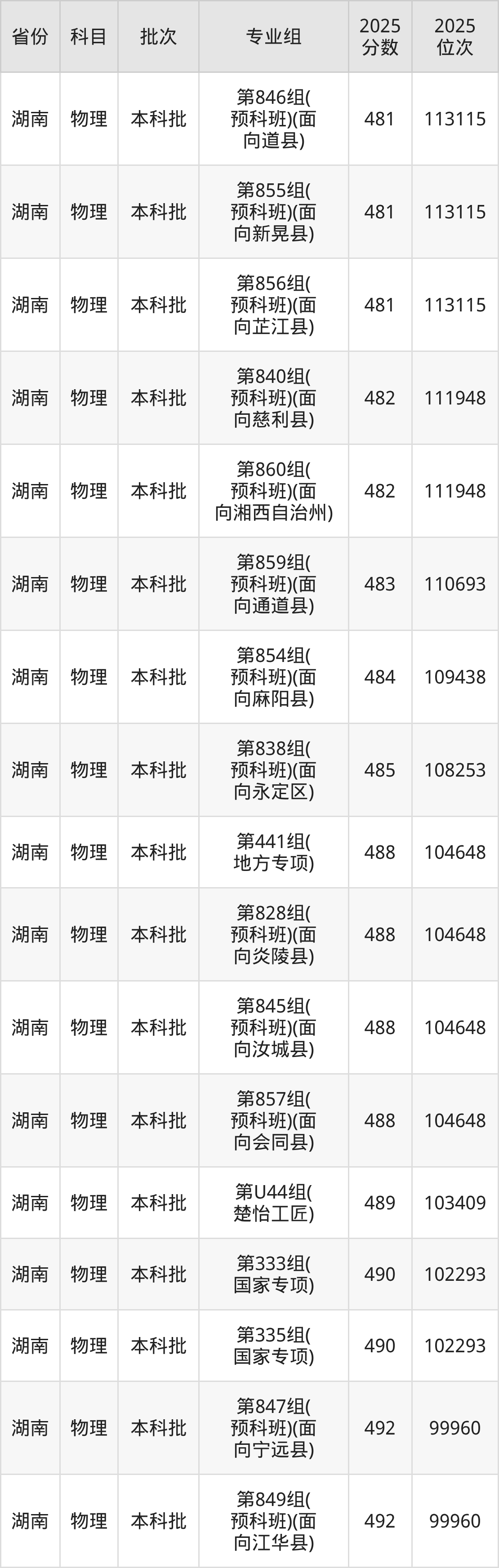 湖南工业大学第002组:2025年投档录取最低分为481分,录取最低位次为35426名。