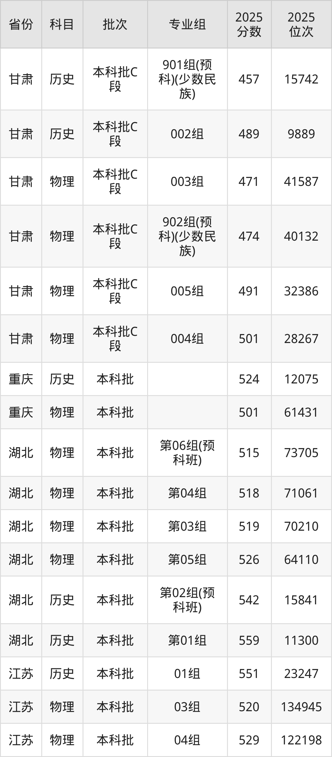 少数民族预科(预科班):2025年投档录取最低分为498分。