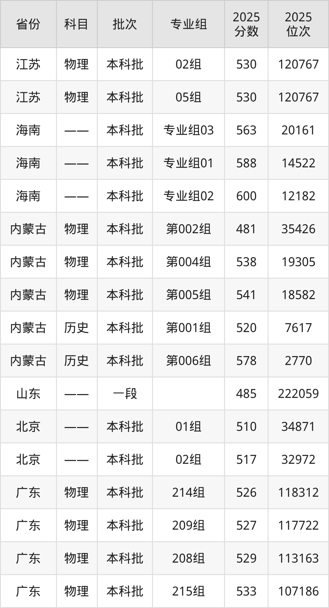 2025年湖南工业大学全国录取分数线是402分到600分,录取最低在黑龙江物理类(第003组)、录取最高在海南(专业组02)。各省各专业组最低分具有差异,详情如下: