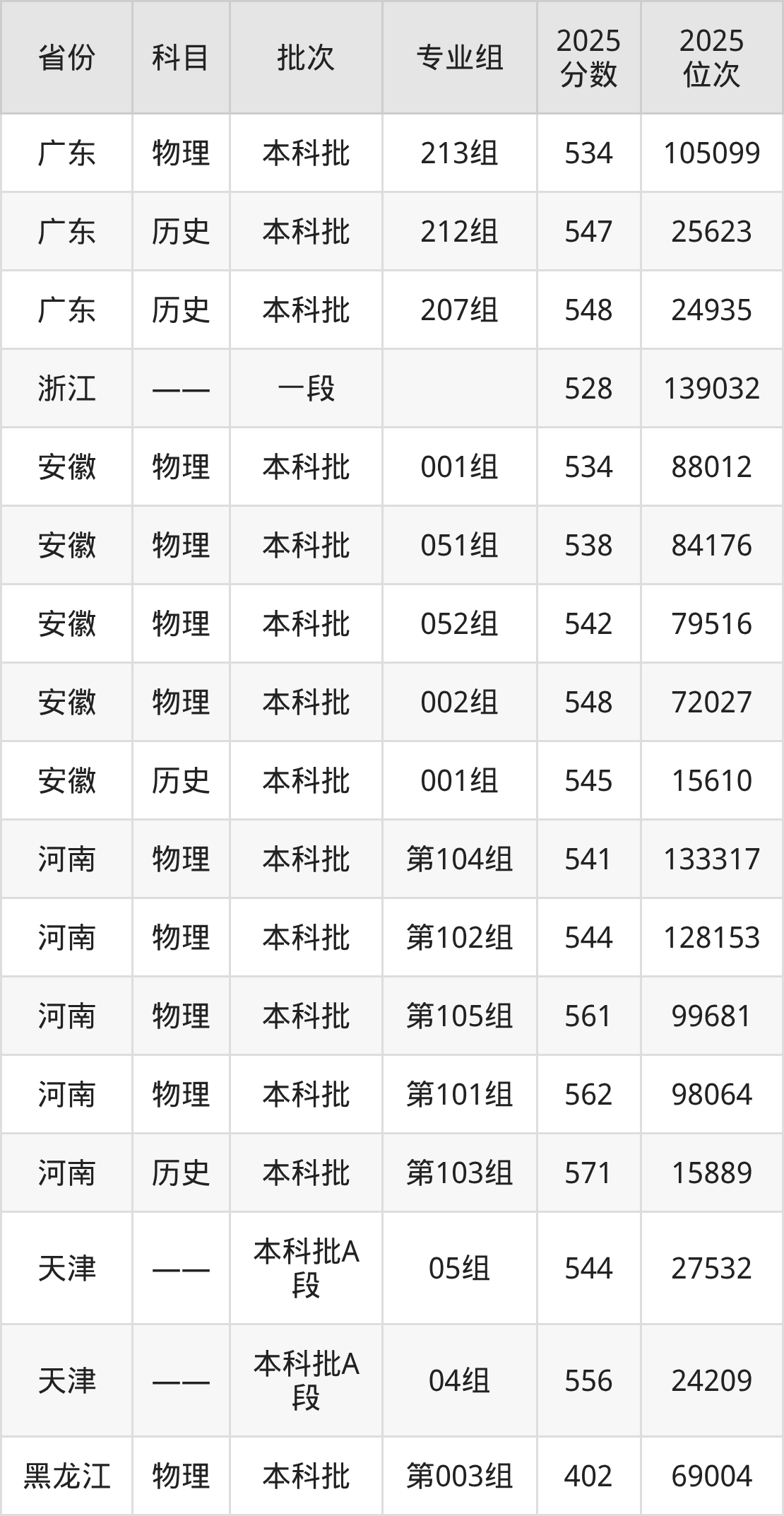 湖南工业大学051组:2025年投档录取最低分为538分,录取最低位次为84176名。
