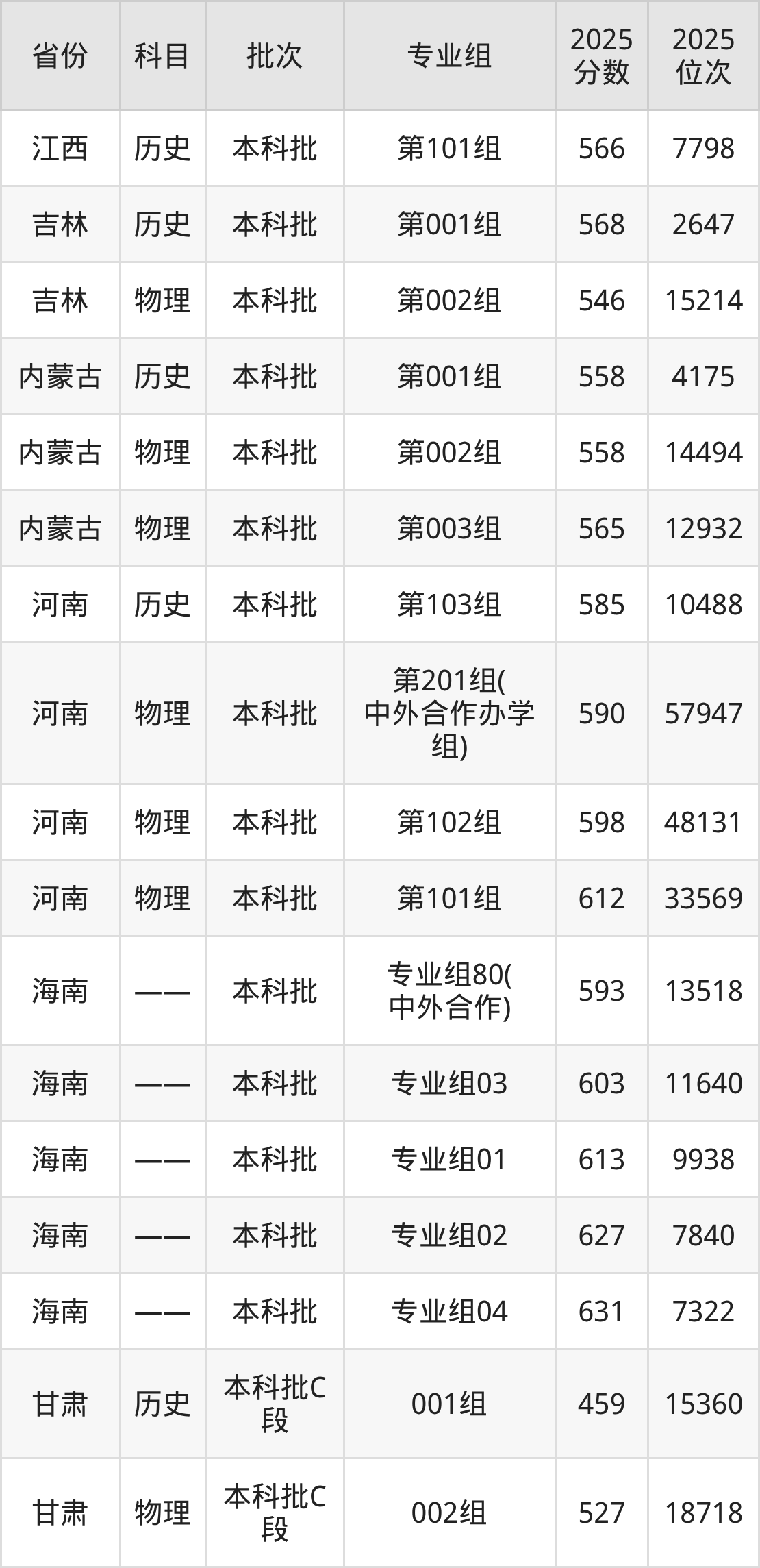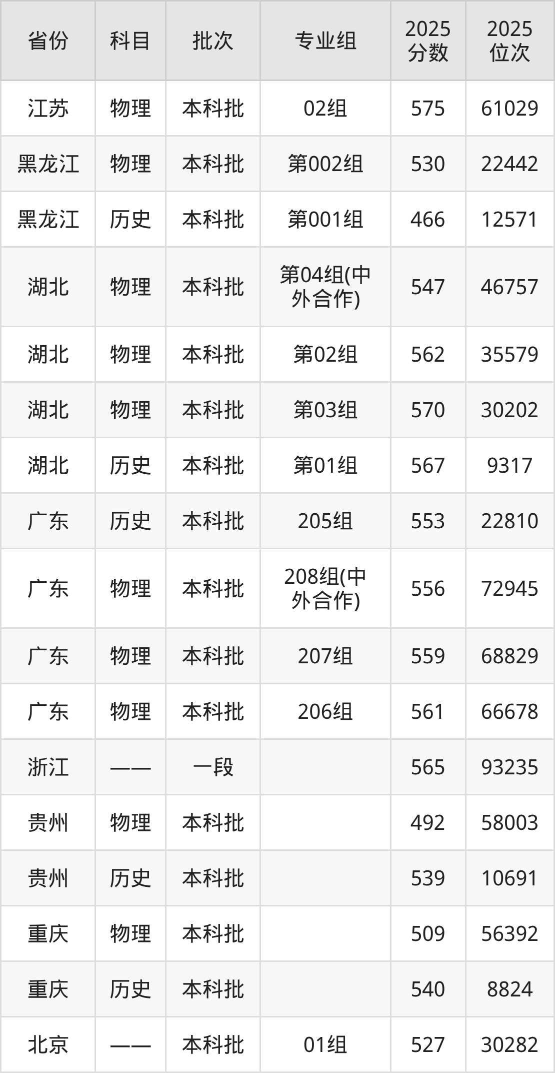 2025年投档录取最低分为539分,录取最低位次为10691名。