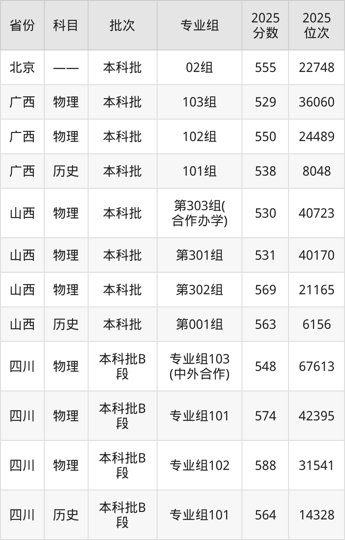 西安工业大学专业组103(中外合作):2025年投档录取最低分为548分,录取最低位次为67613名。