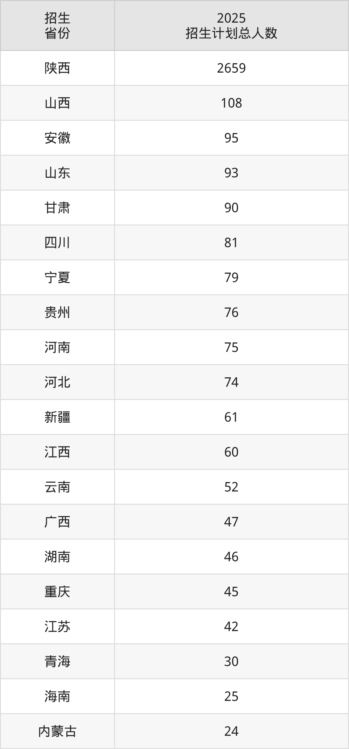 2025年西安工业大学面向全国29个省市开展本科招生;招生专业共42个,招生人数共3993人。2025年在陕西省招生计划总人数是2659人,其中,西安工业大学在陕西省招生人数最多的是光电信息科学与工程。西安工业大学在各省具体招生人数情况如下表。