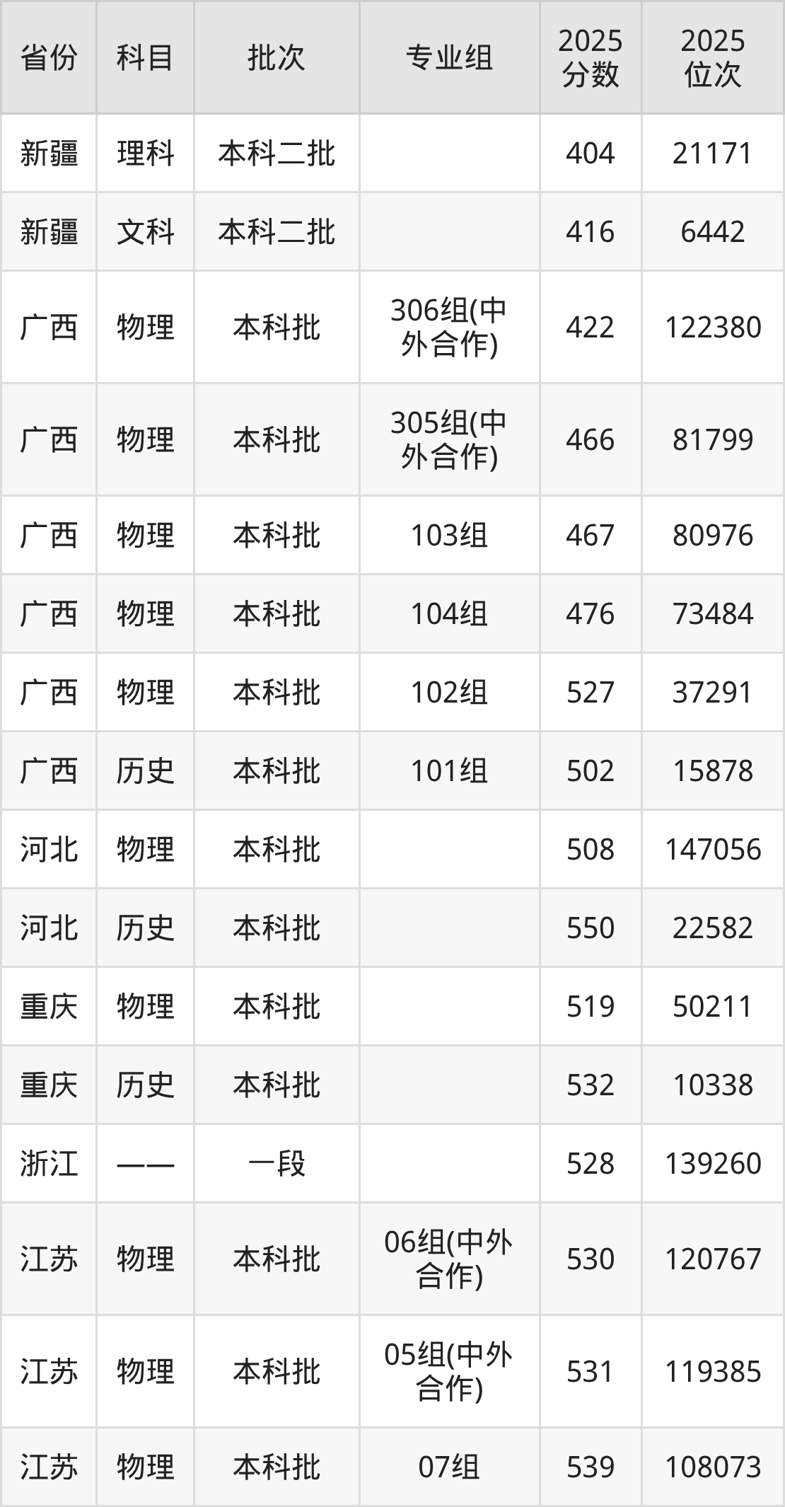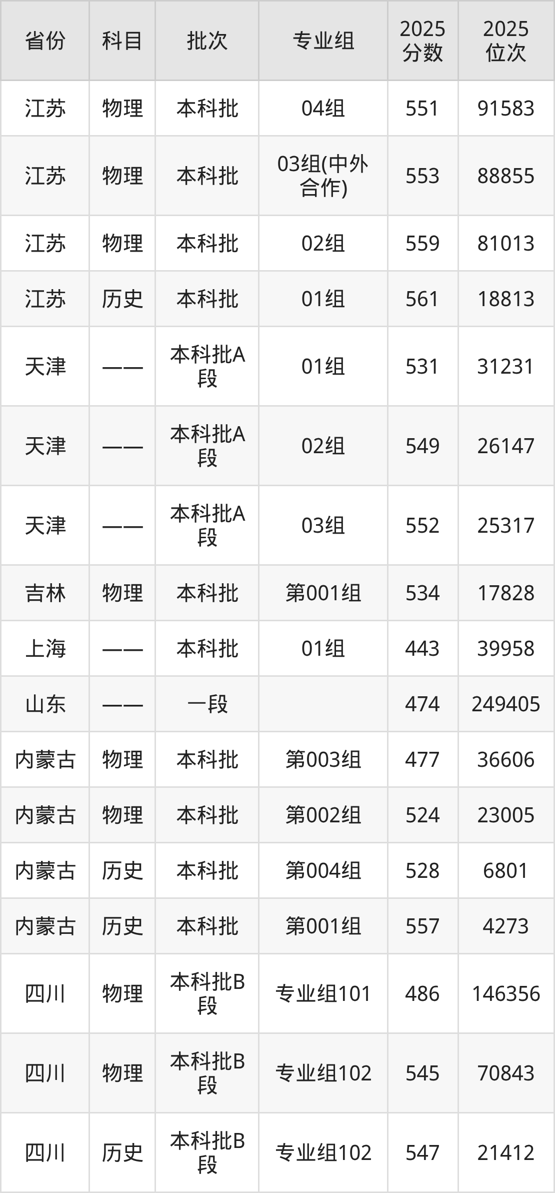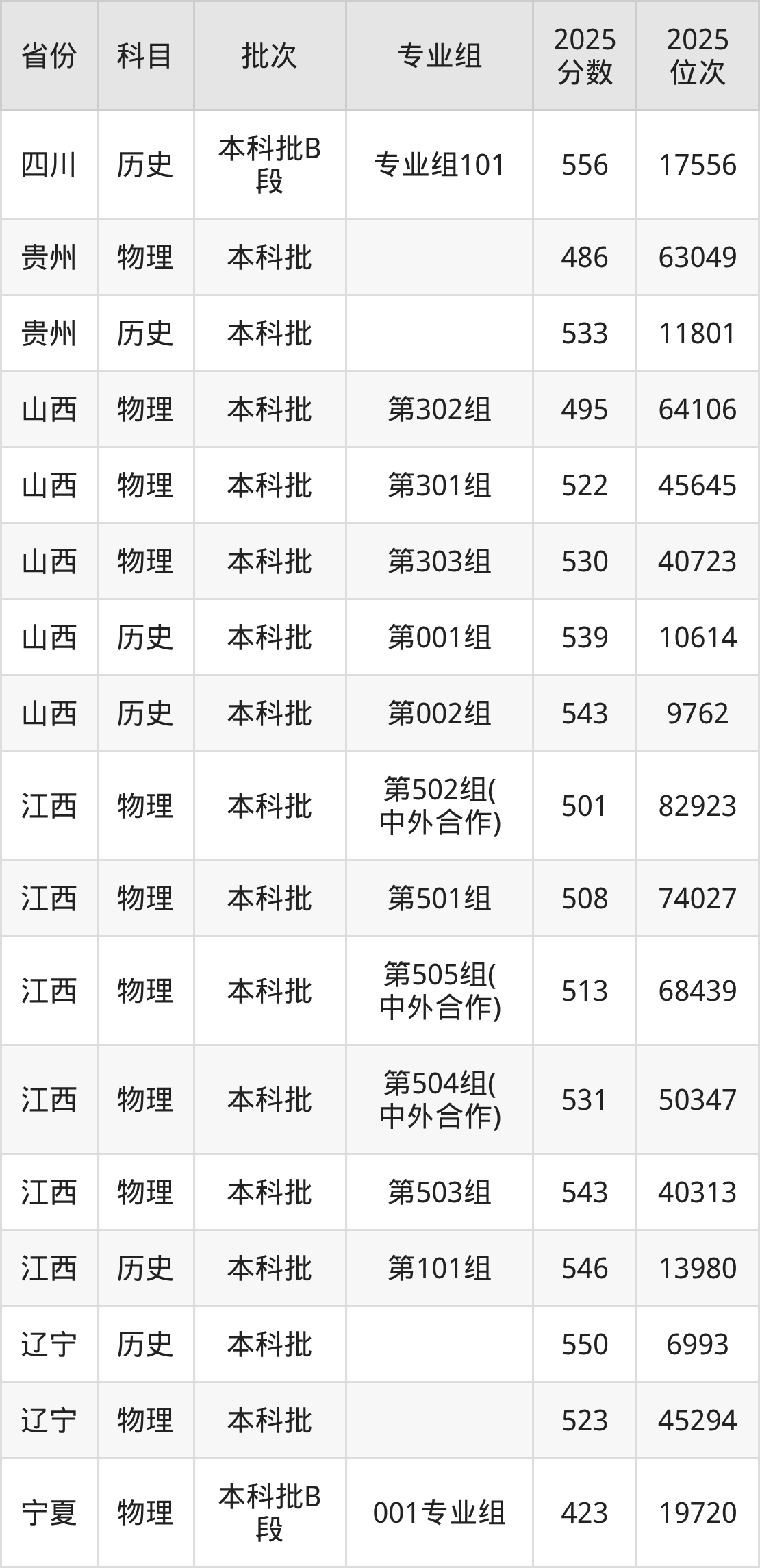 2025年投档录取最低分为550分,录取最低位次为6993名。