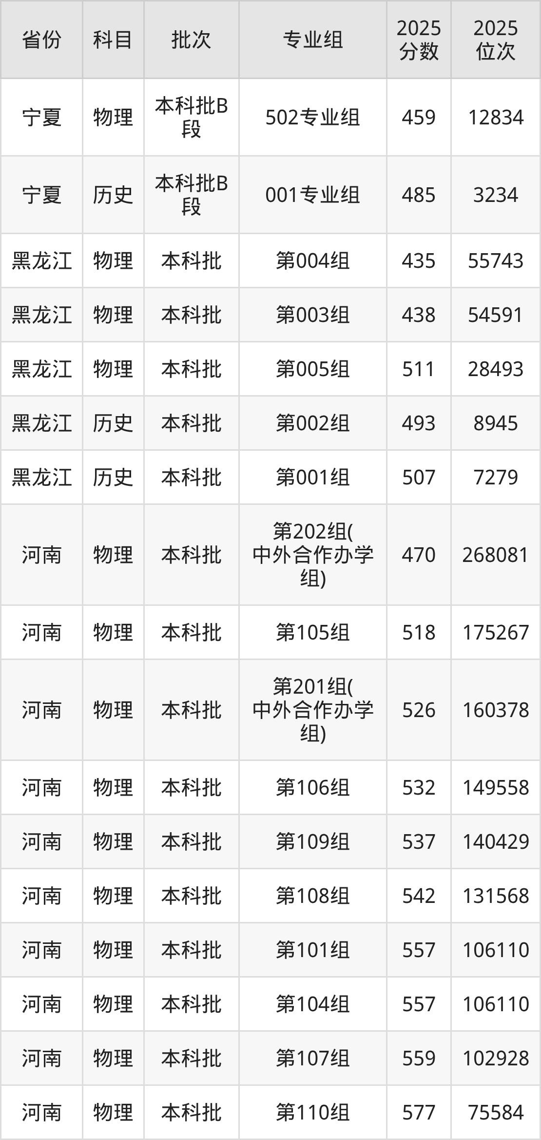 河南科技大学502专业组:2025年投档录取最低分为459分,录取最低位次为12834名。