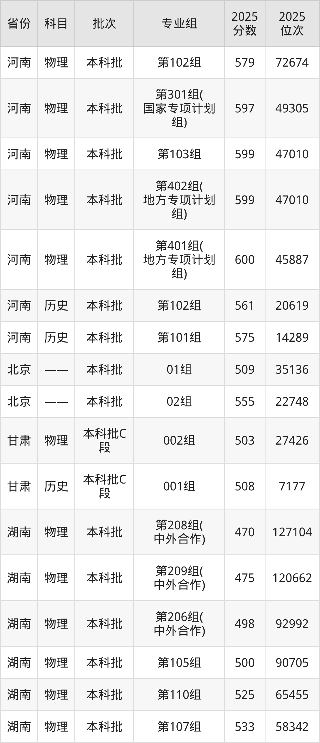 河南科技大学第502组(中外合作):2025年投档录取最低分为501分,录取最低位次为82923名。