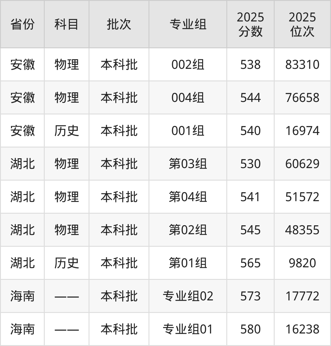 2025年投档录取最低分为533分,录取最低位次为11801名。