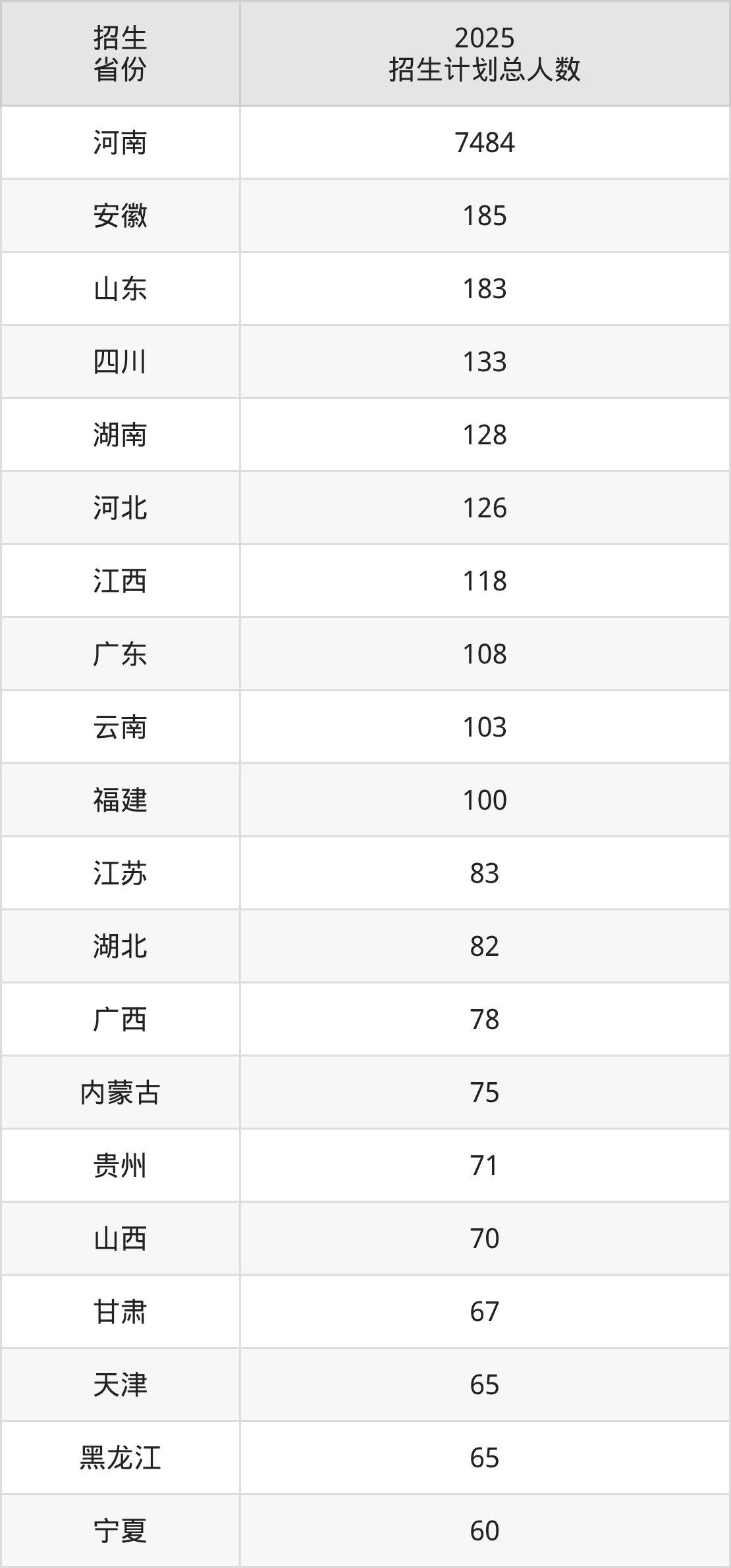2025年河南科技大学面向全国29个省市开展本科招生;招生专业共84个,招生人数共9683人。2025年在河南省招生计划总人数是7484人,其中,河南科技大学在河南省招生人数最多的是软件工程。河南科技大学在各省具体招生人数情况如下表。