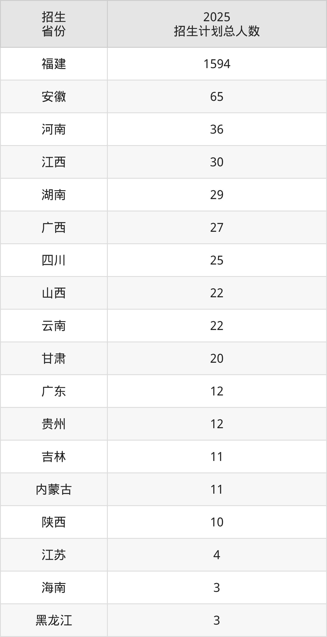 2025年闽南科技学院面向全国18个省市开展本科招生;招生专业共21个,招生人数共1936人。2025年在福建省招生计划总人数是1594人,其中,闽南科技学院在福建省招生人数最多的是智能科学与技术。闽南科技学院在各省具体招生人数情况如下表。