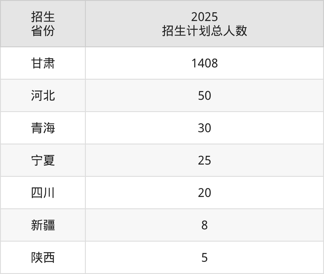 2025年甘肃财贸职业学院面向全国7个省市开展专科招生;招生专业共35个,招生人数共1546人。2025年在甘肃省招生计划总人数是1408人,其中,甘肃财贸职业学院在甘肃省招生人数最多的是大数据与会计。甘肃财贸职业学院在各省具体招生人数情况如下表。