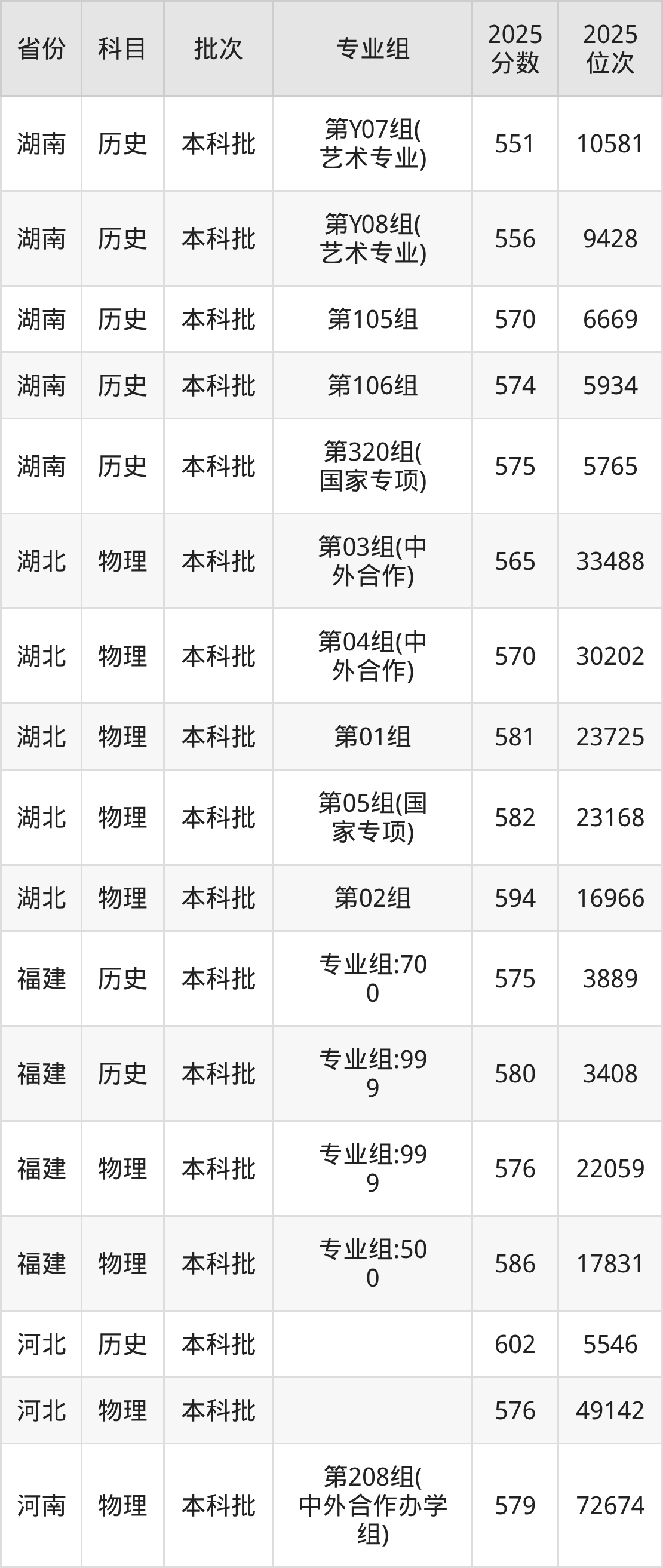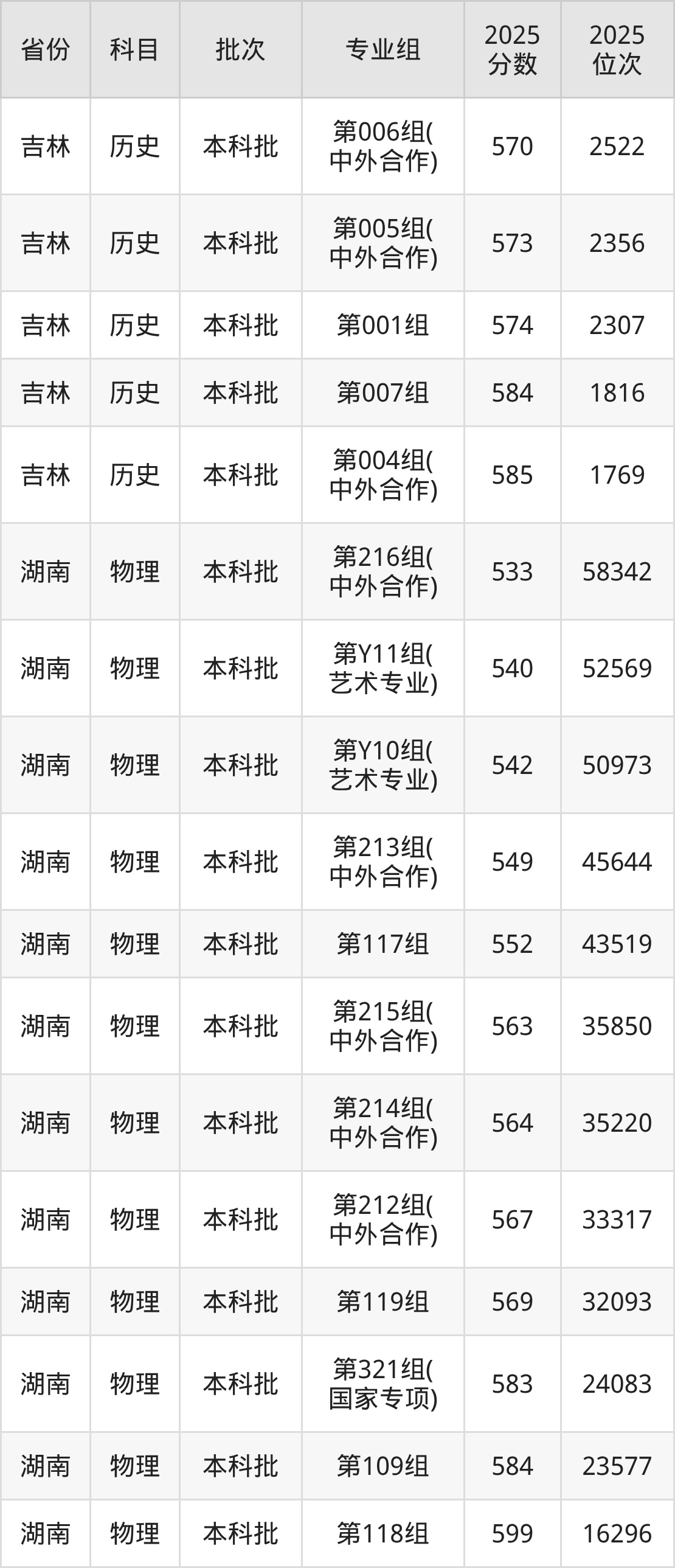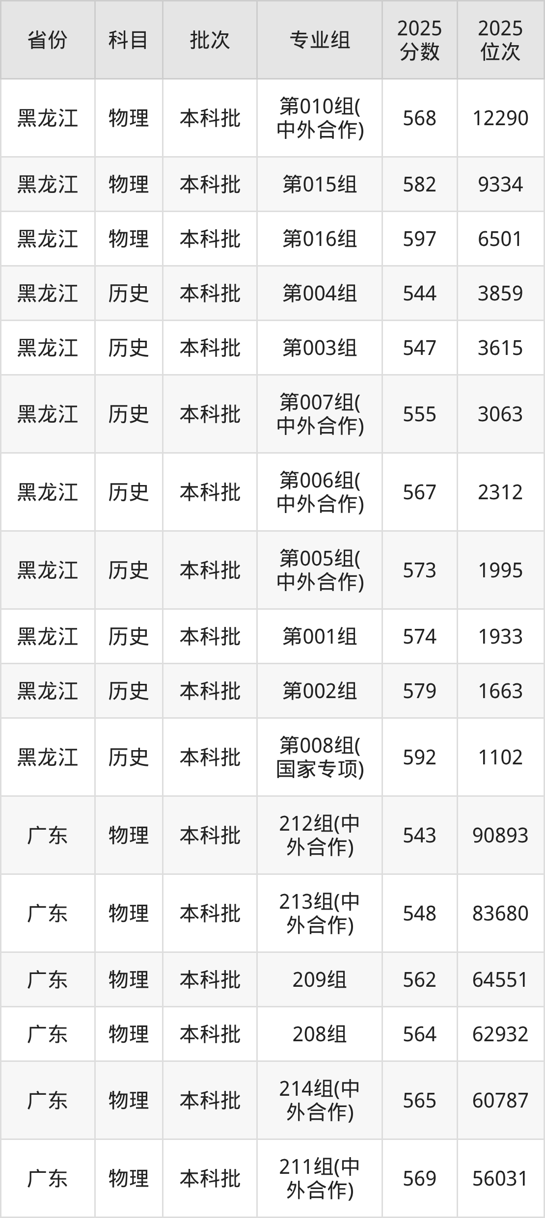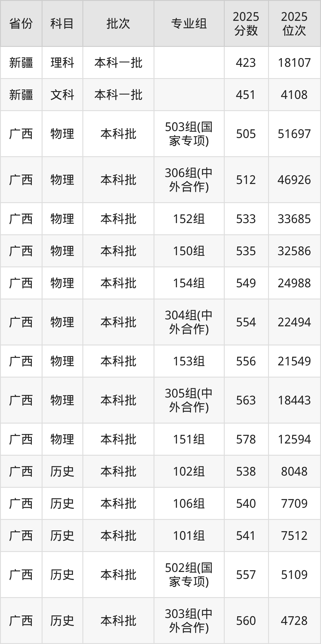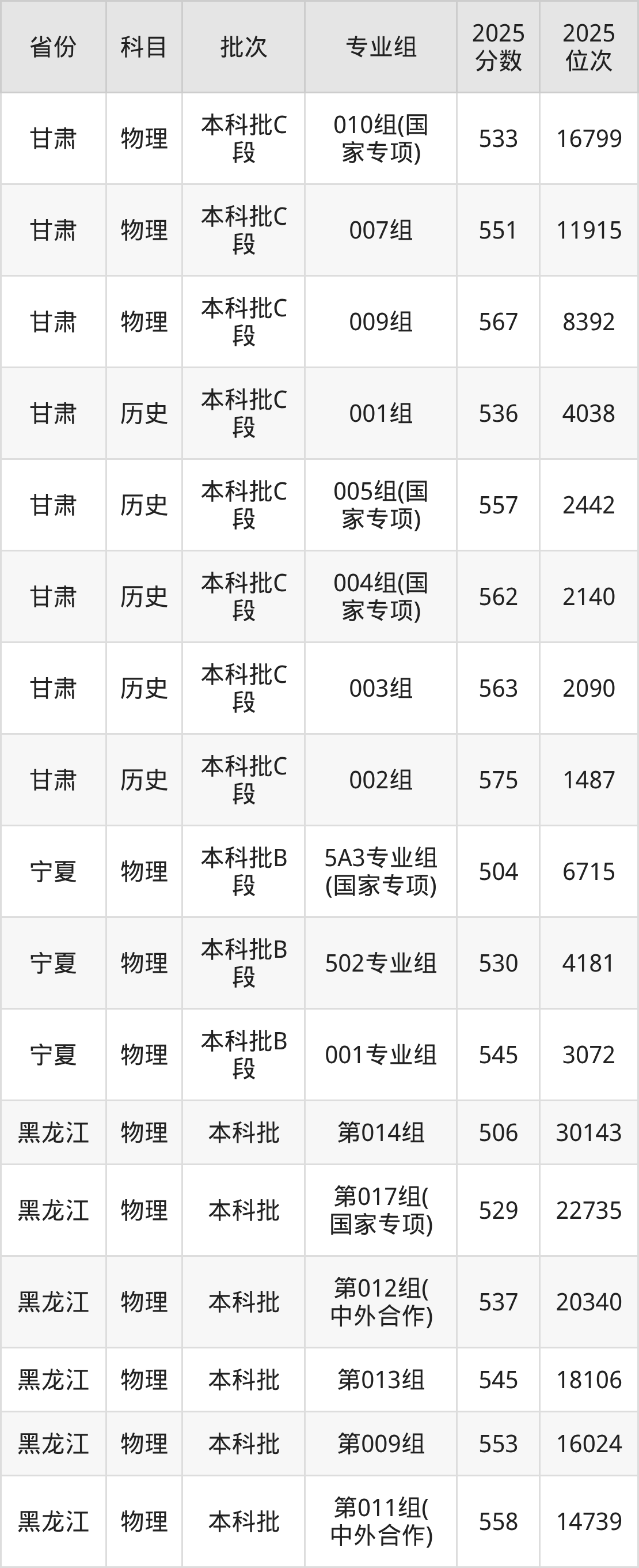 2025年在本科物理类进行招生,各专业组分数线详情如下: