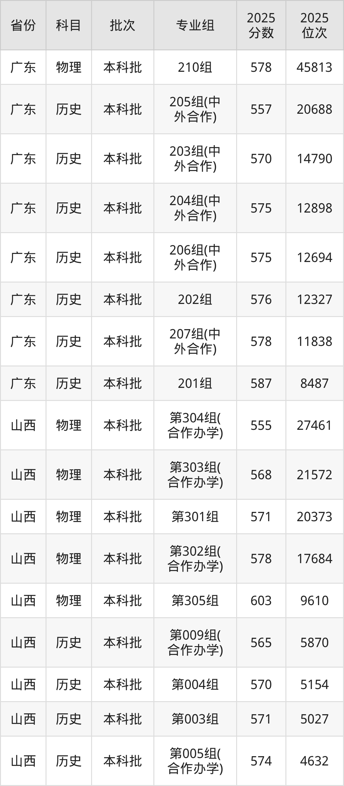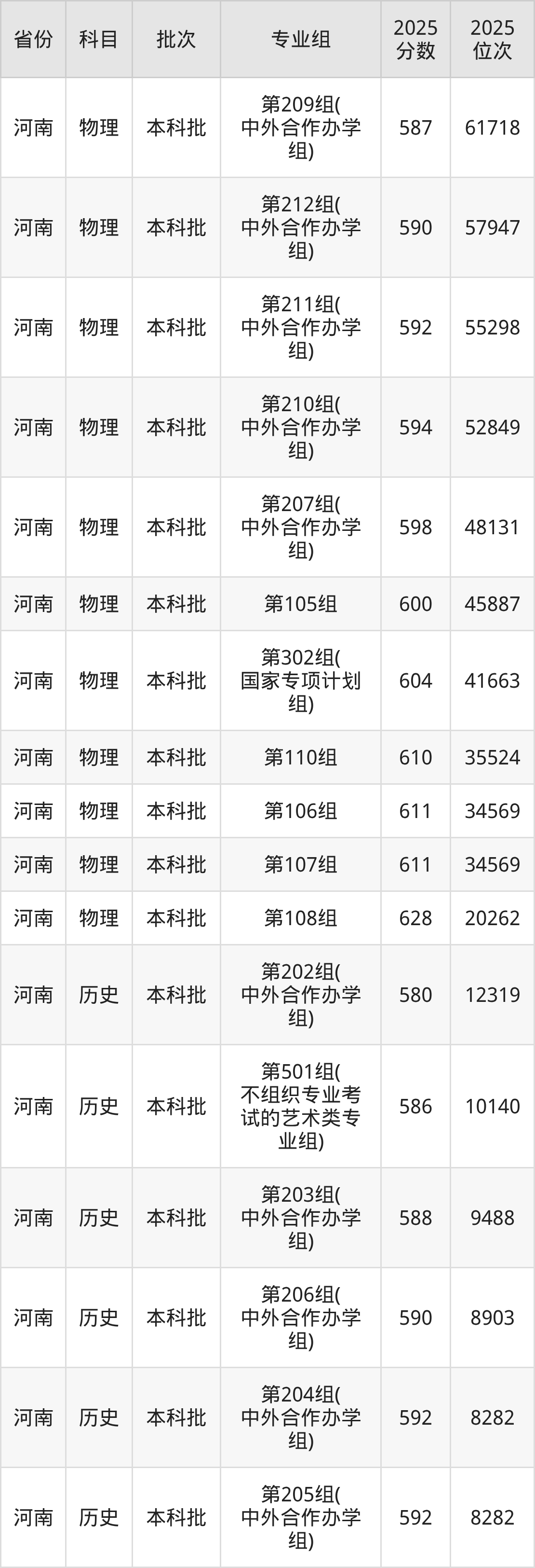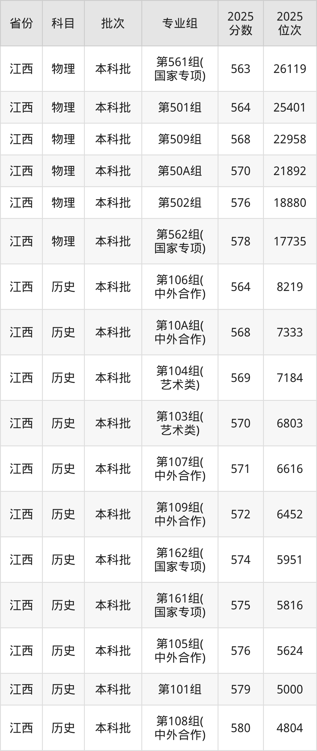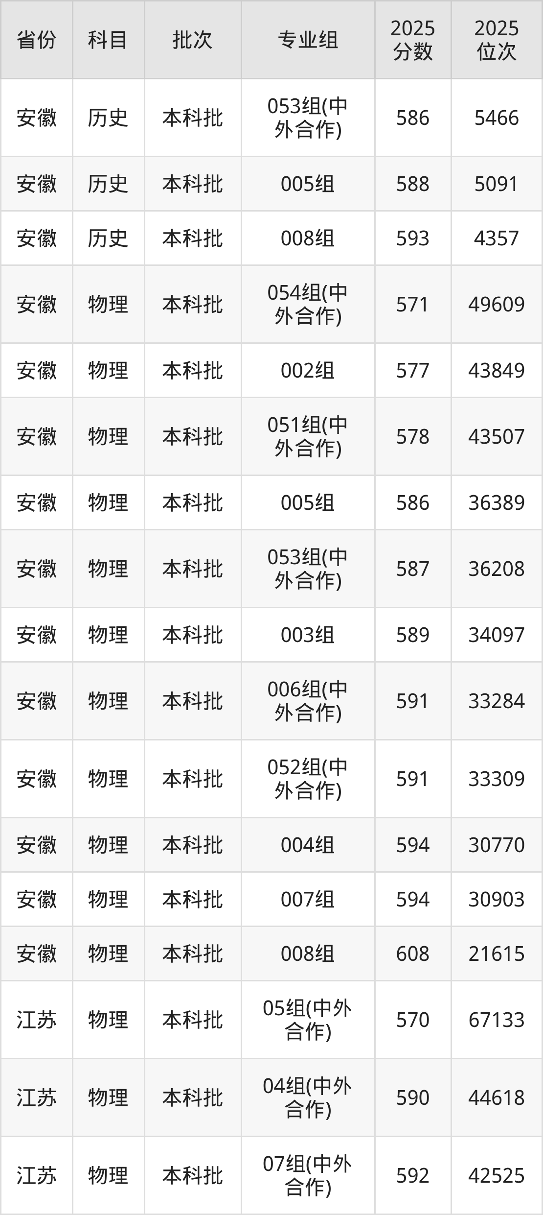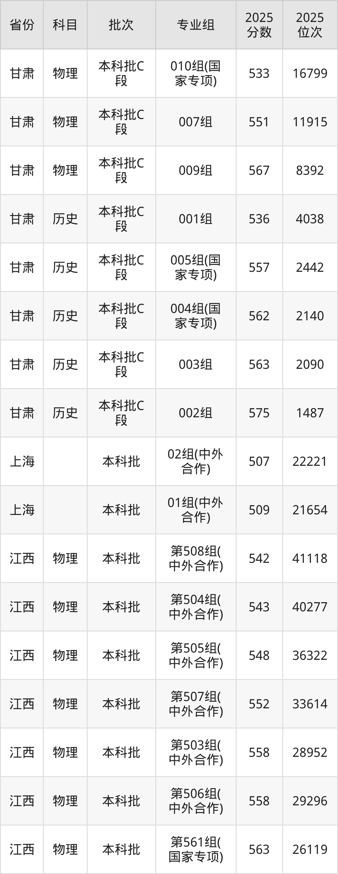 2025年在本科物理类进行招生,各专业组分数线详情如下: