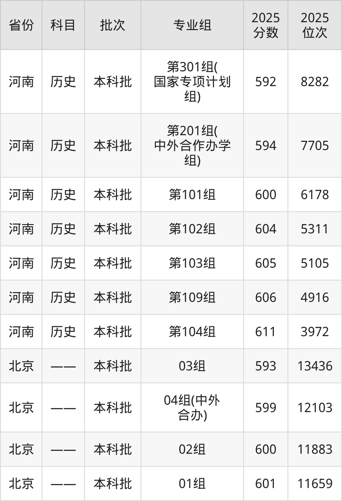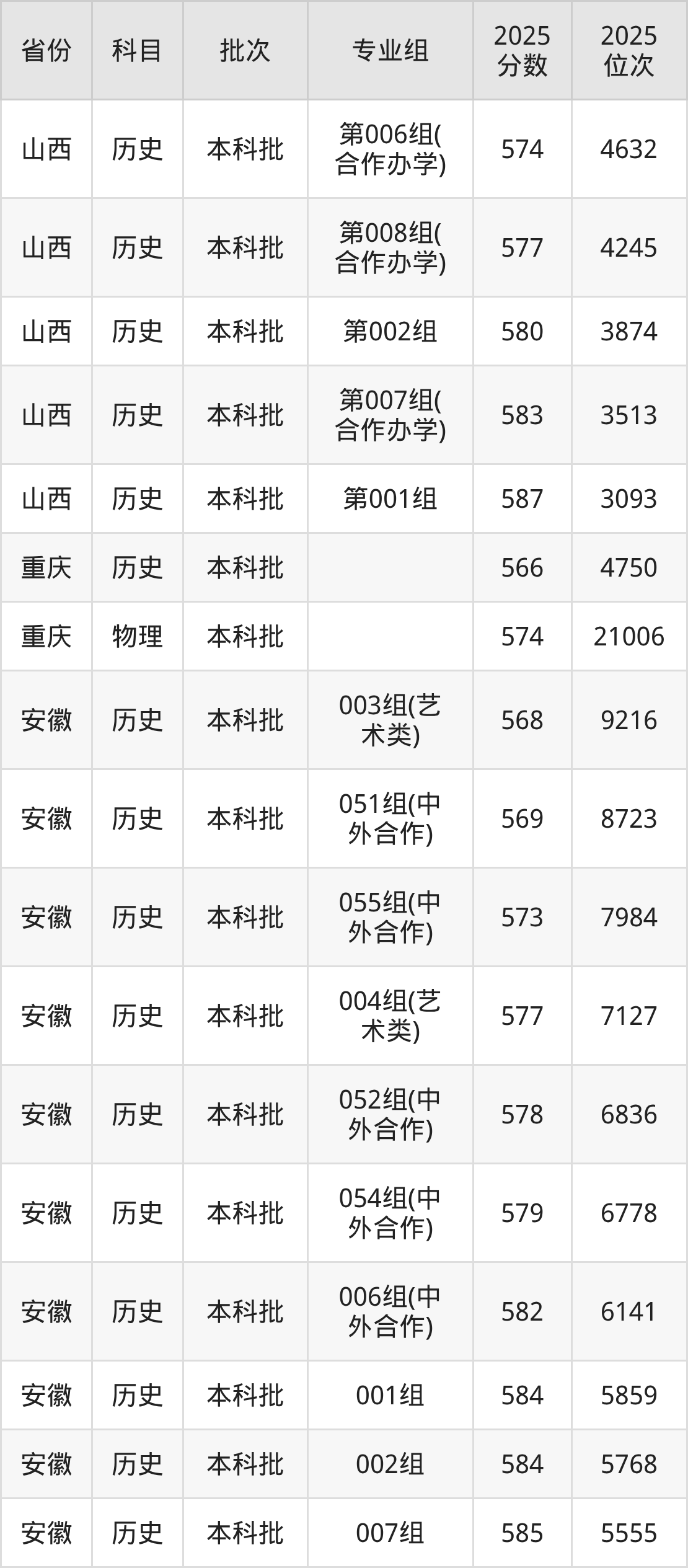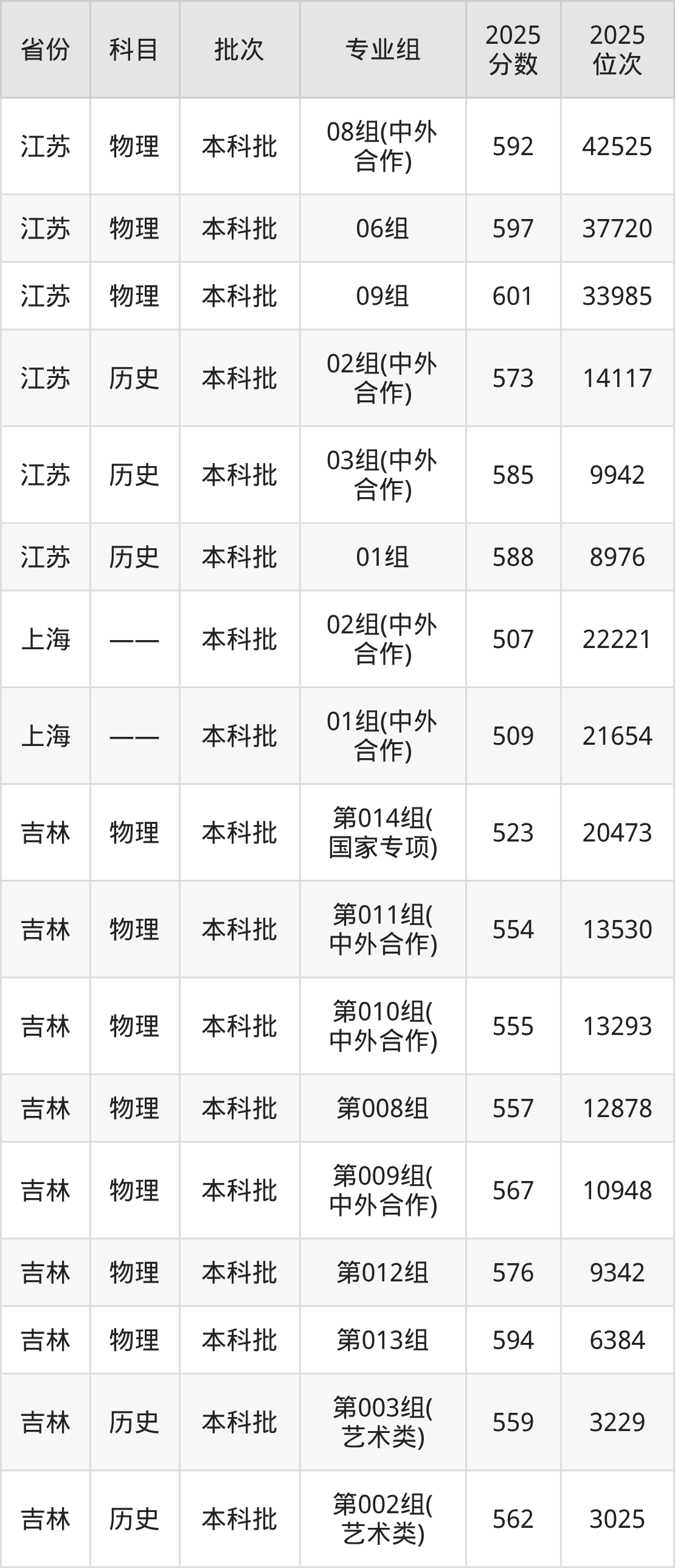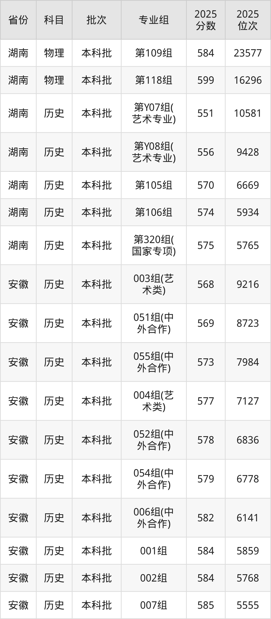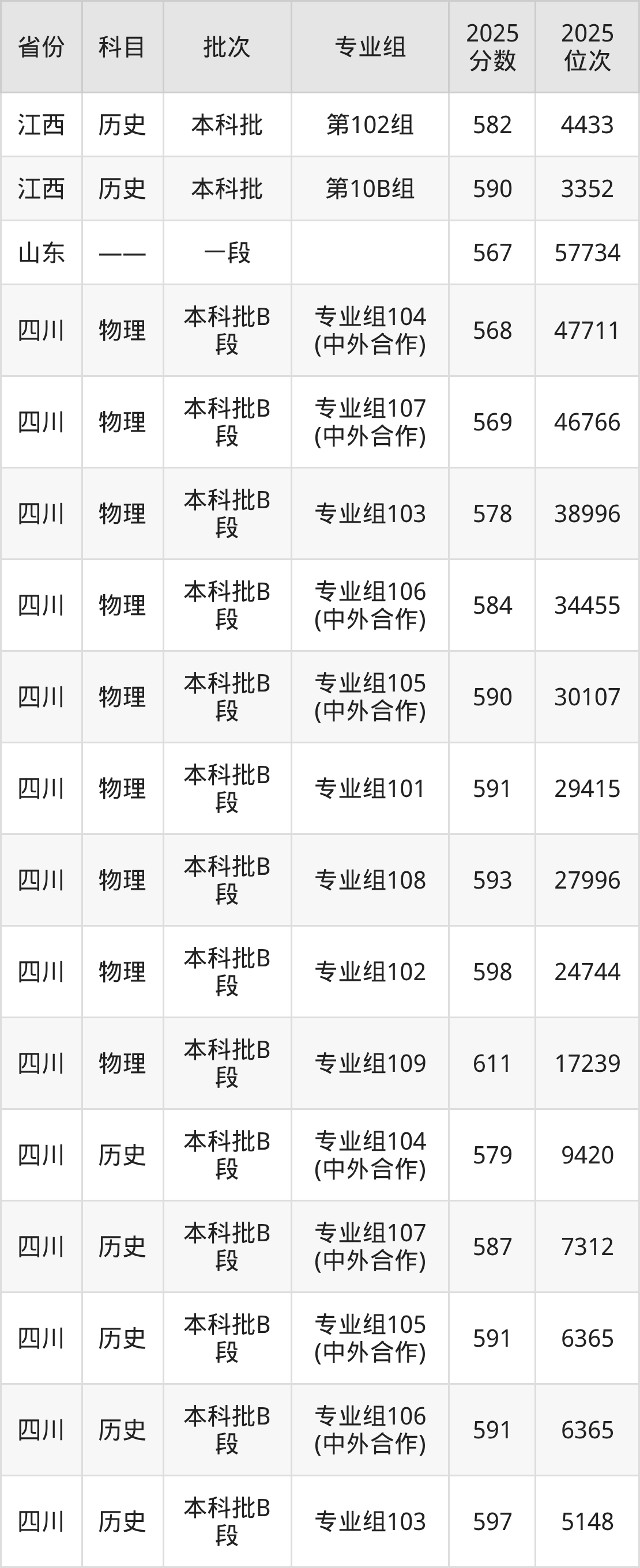 2025年在本科物理类进行招生,各专业组分数线详情如下: