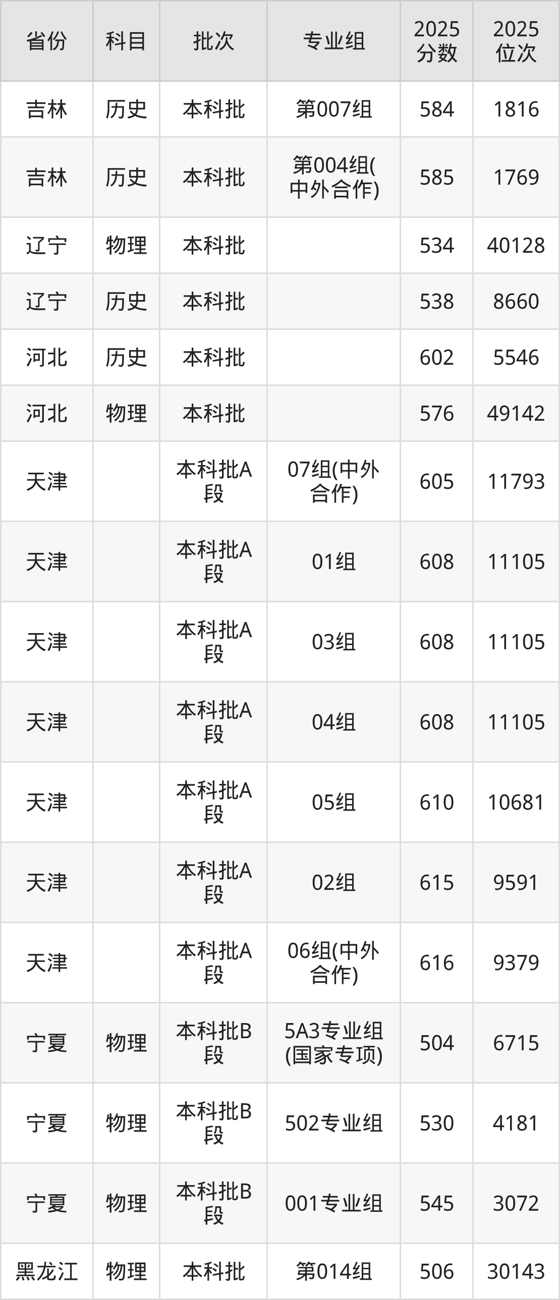 辽宁大学第012组(中外合作):2025年投档录取最低分为537分,录取最低位次为20340名。