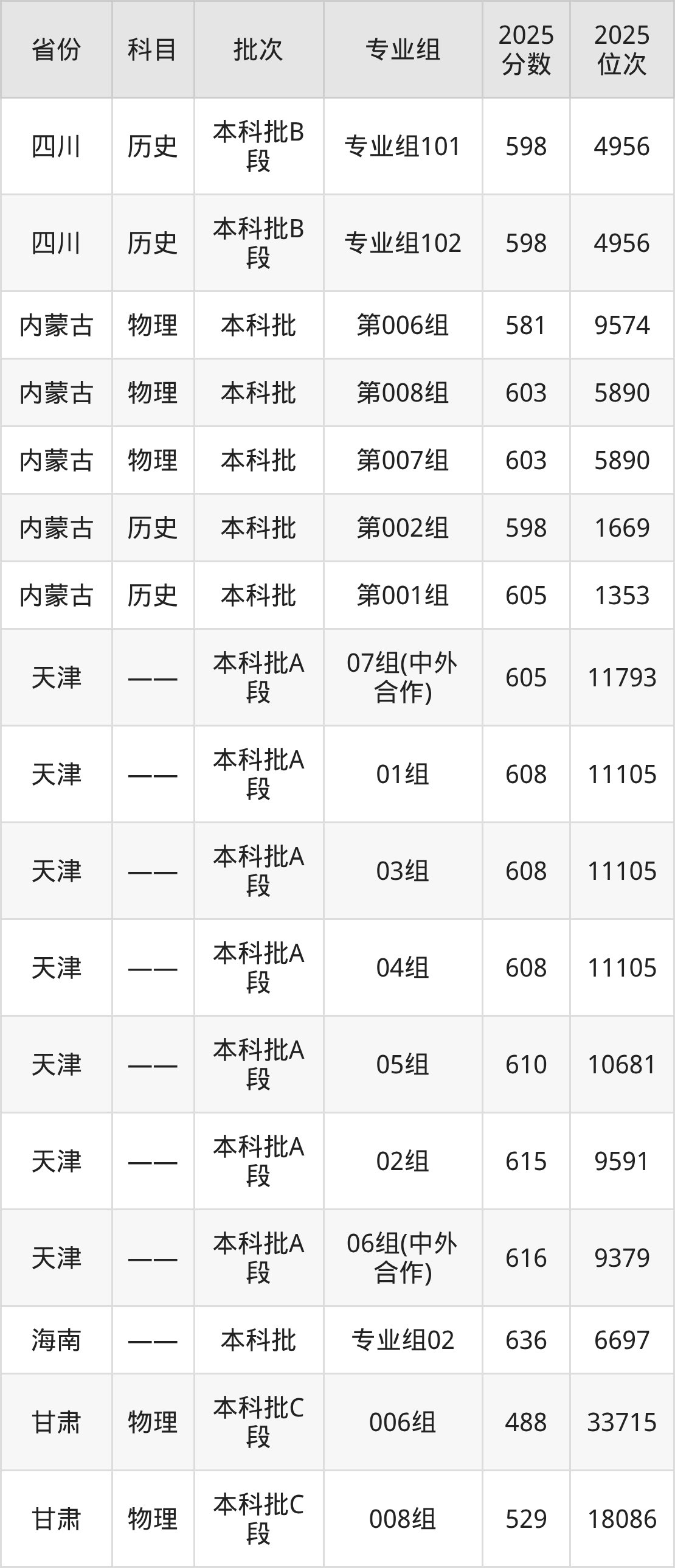 2025年投档录取最低分为573分,录取最低位次为4909名。