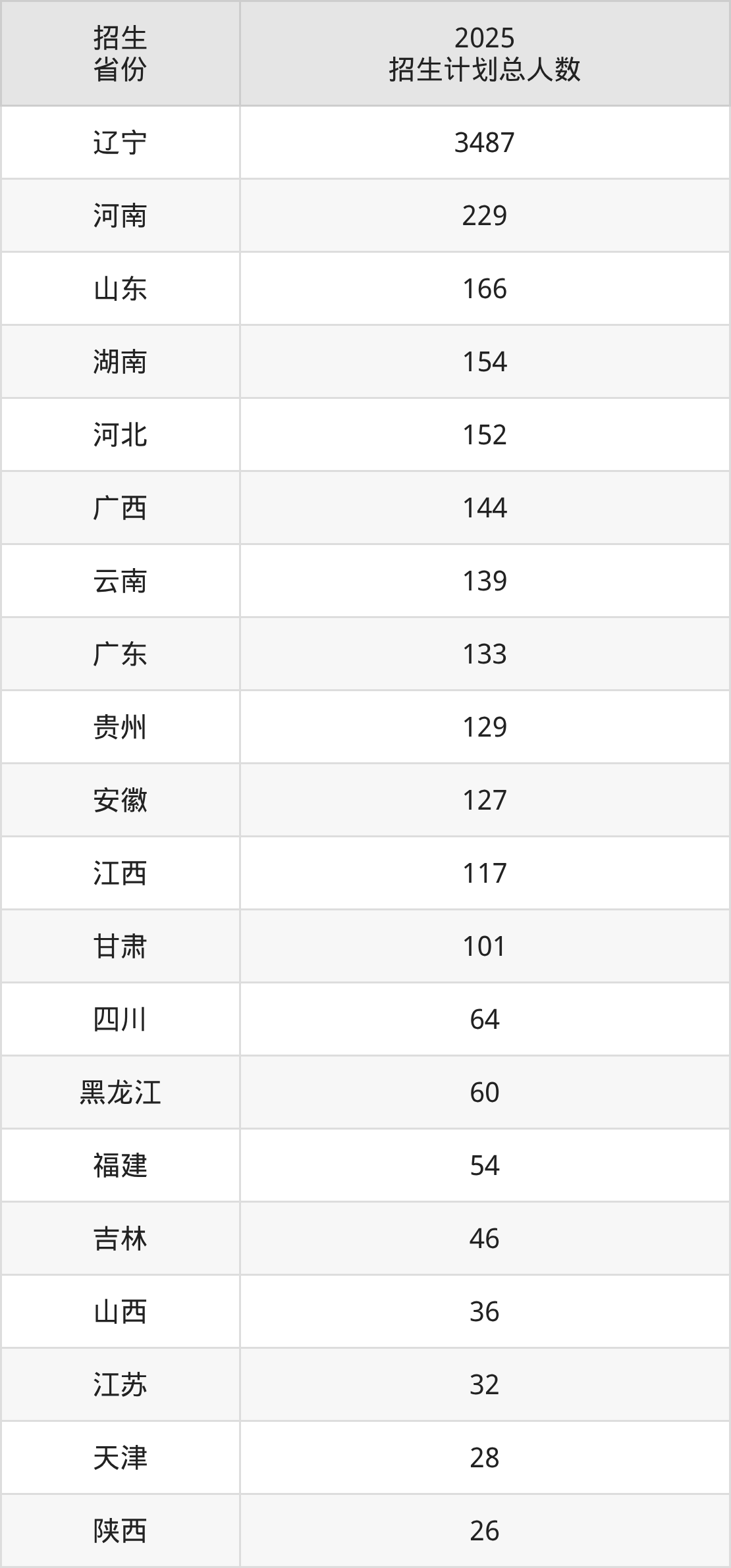 2025年辽宁大学面向全国29个省市开展本科招生;招生专业共58个,招生人数共5566人。2025年在辽宁省招生计划总人数是3487人,其中,辽宁大学在辽宁省招生人数最多的是金融学类。辽宁大学在各省具体招生人数情况如下表。