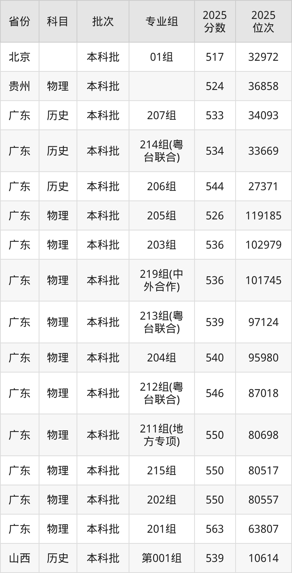 东莞理工学院第001组:2025年投档录取最低分为539分,录取最低位次为10614名。