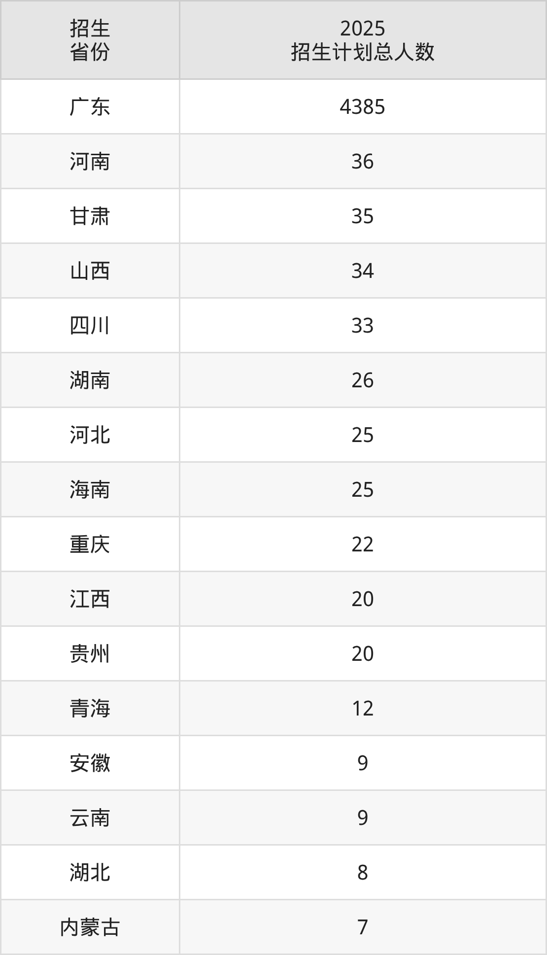 2025年东莞理工学院面向全国22个省市开展本科招生;招生专业共47个,招生人数共4731人。2025年在广东省招生计划总人数是4385人,其中,东莞理工学院在广东省招生人数最多的是计算机类。东莞理工学院在各省具体招生人数情况如下表。