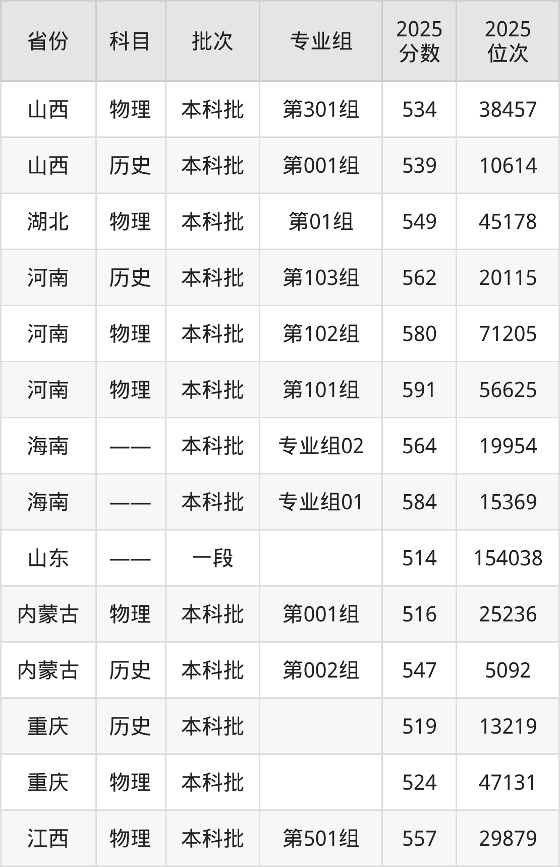2025年投档录取最低分为519分,录取最低位次为13219名。