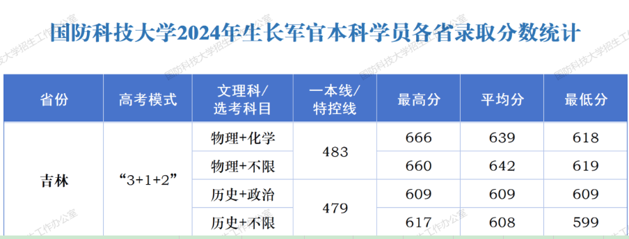 2025年吉林军校录取分数暂未公布,以下是部分院校2024年分数线,供参考。