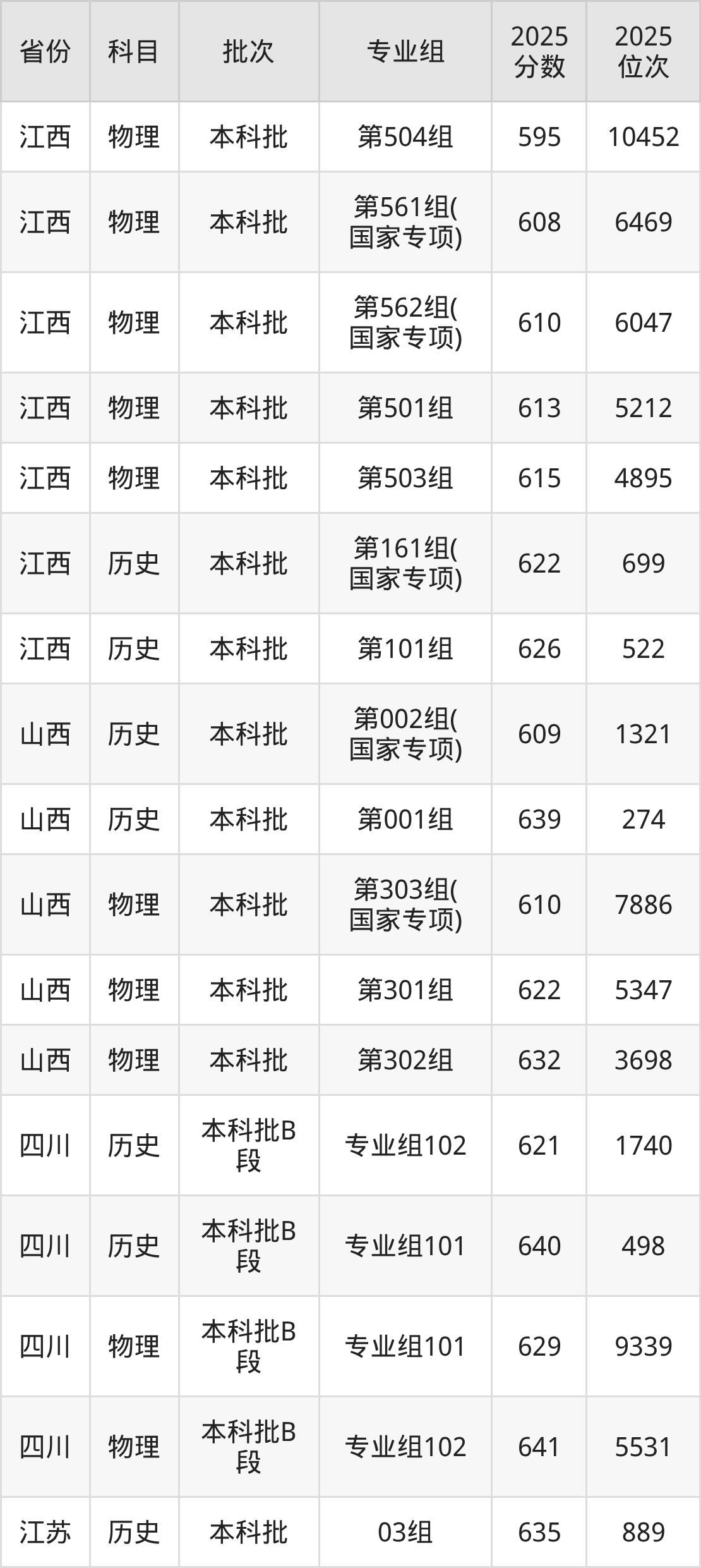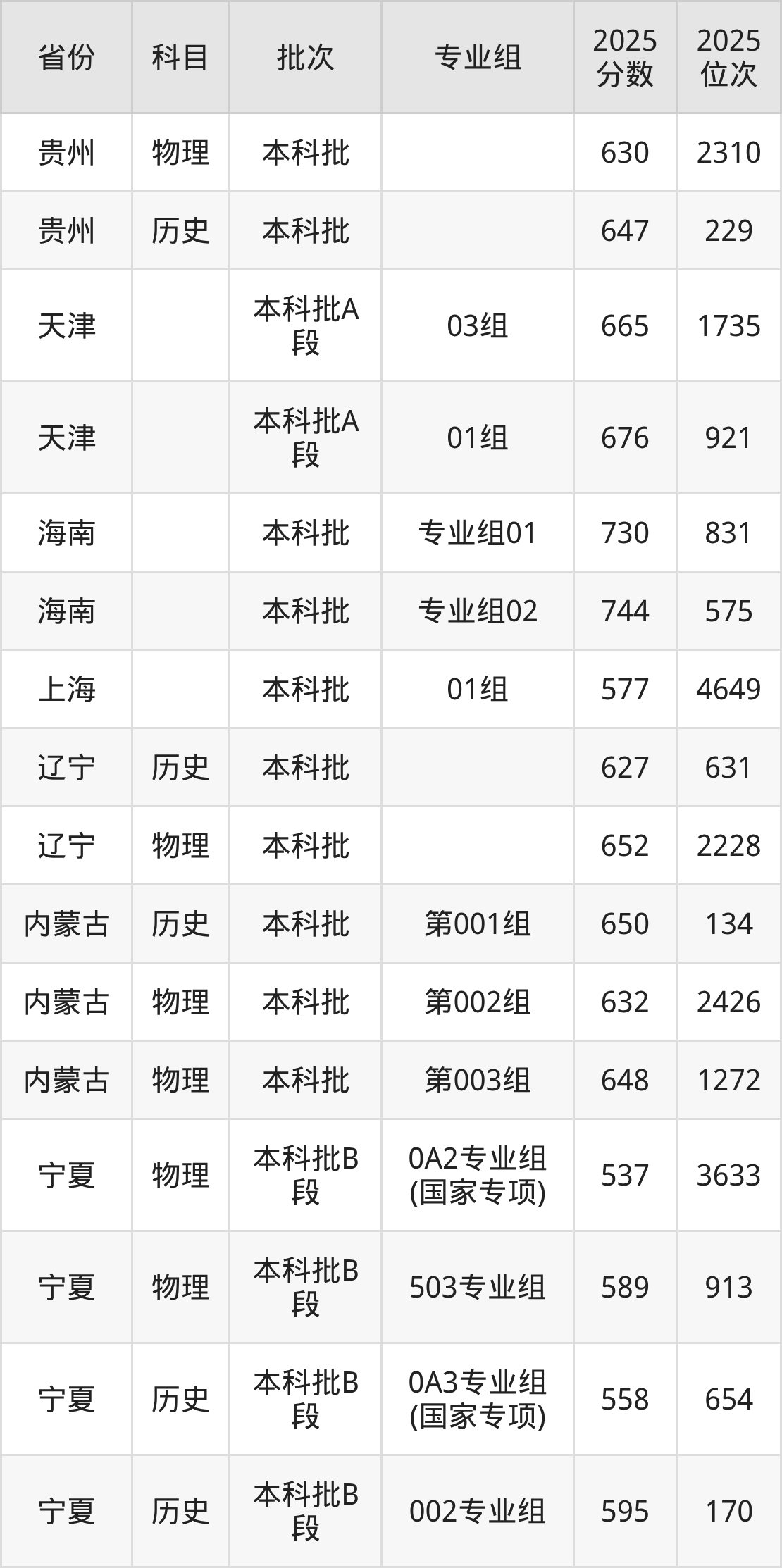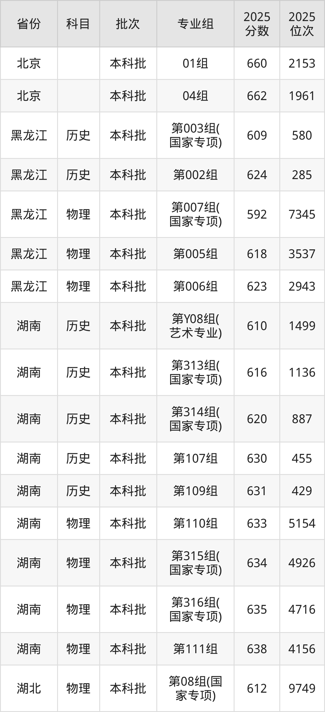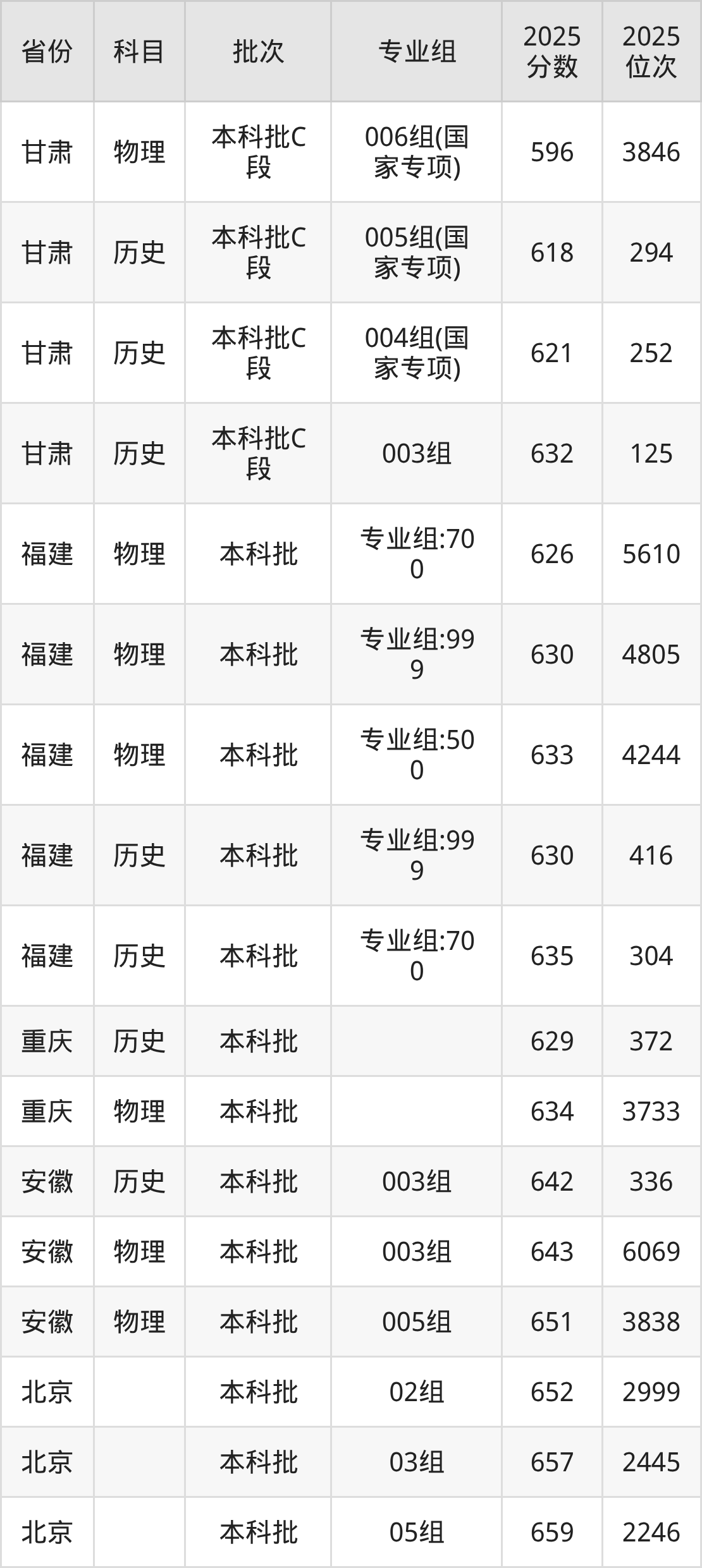 社会科学试验班(社会学为“社会学+心理学”双学士学位复合型人才培养项目):2025年投档录取最低分为644分。