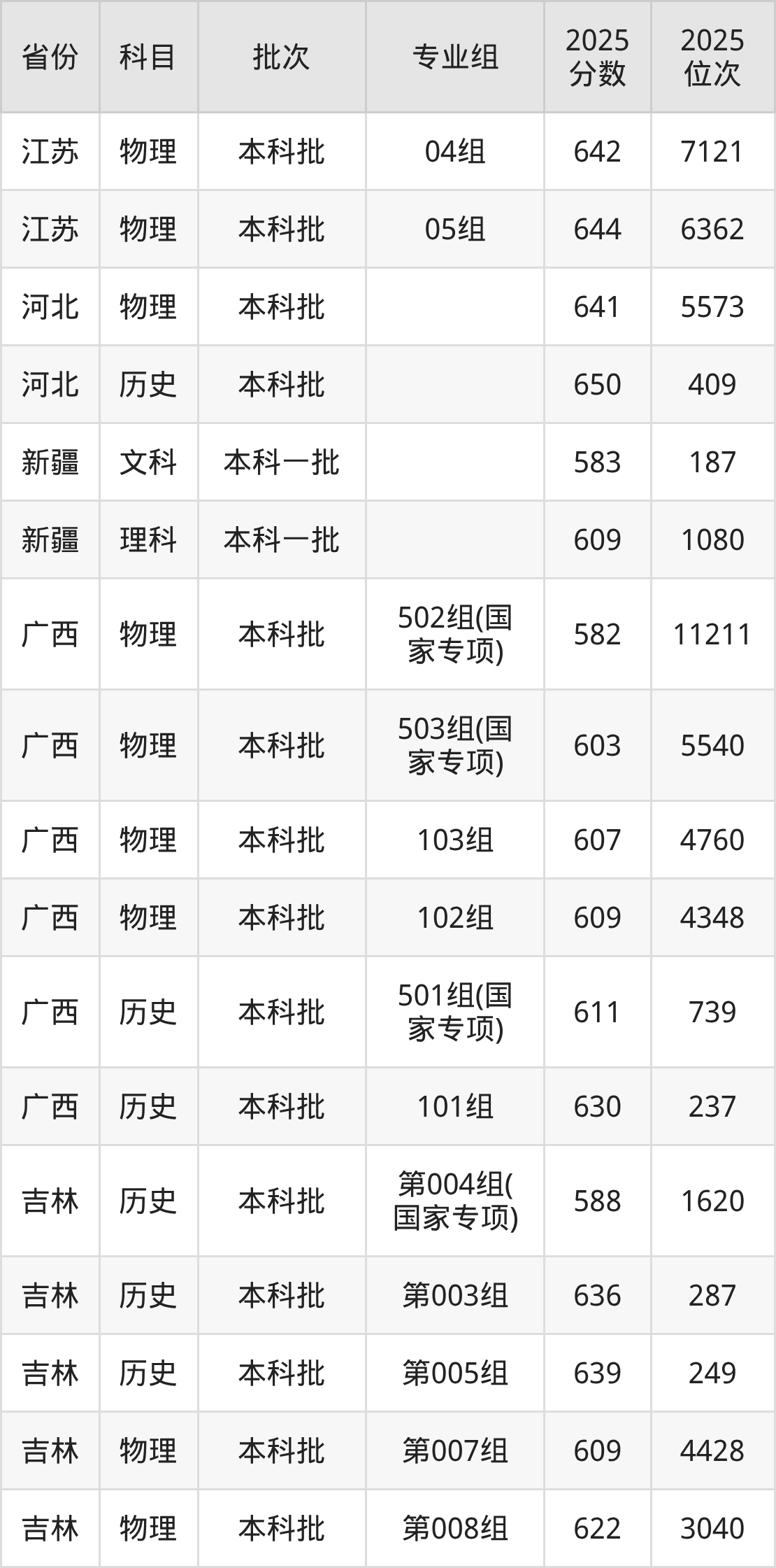 下面是2025年北京师范大学全国录取分数线一览表,请查阅。