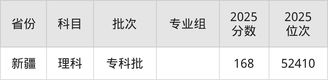 2025年投档录取最低分为168分,录取最低位次为52410名。