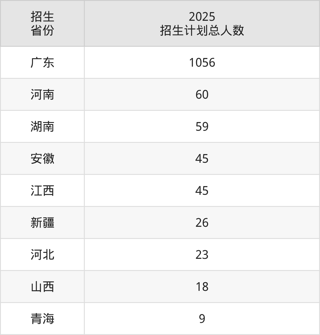2025年惠州城市职业学院面向全国9个省市开展专科招生;招生专业共37个,招生人数共1341人。2025年在广东省招生计划总人数是1056人,其中,惠州城市职业学院在广东省招生人数最多的是机电一体化技术。惠州城市职业学院在各省具体招生人数情况如下表。