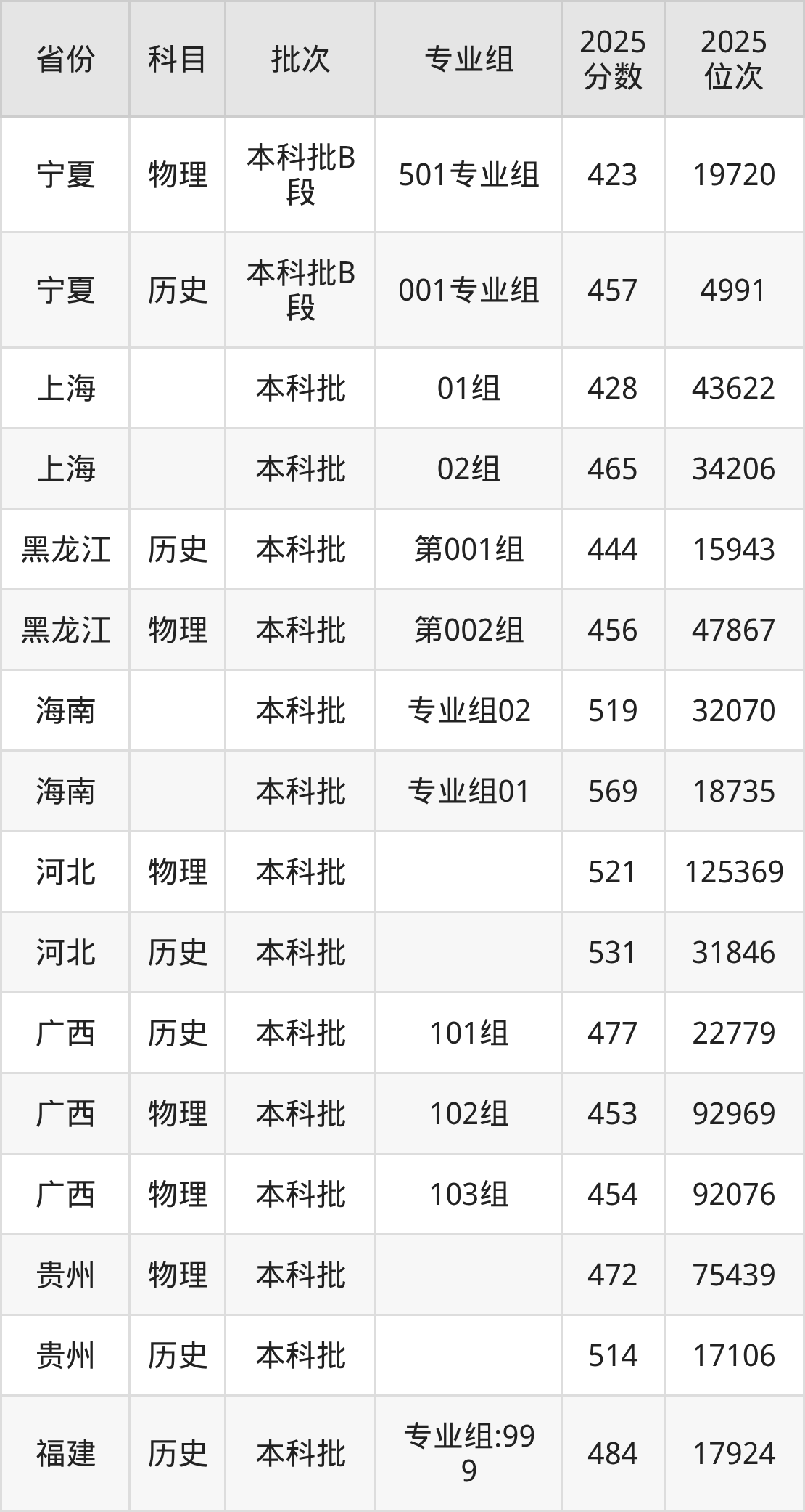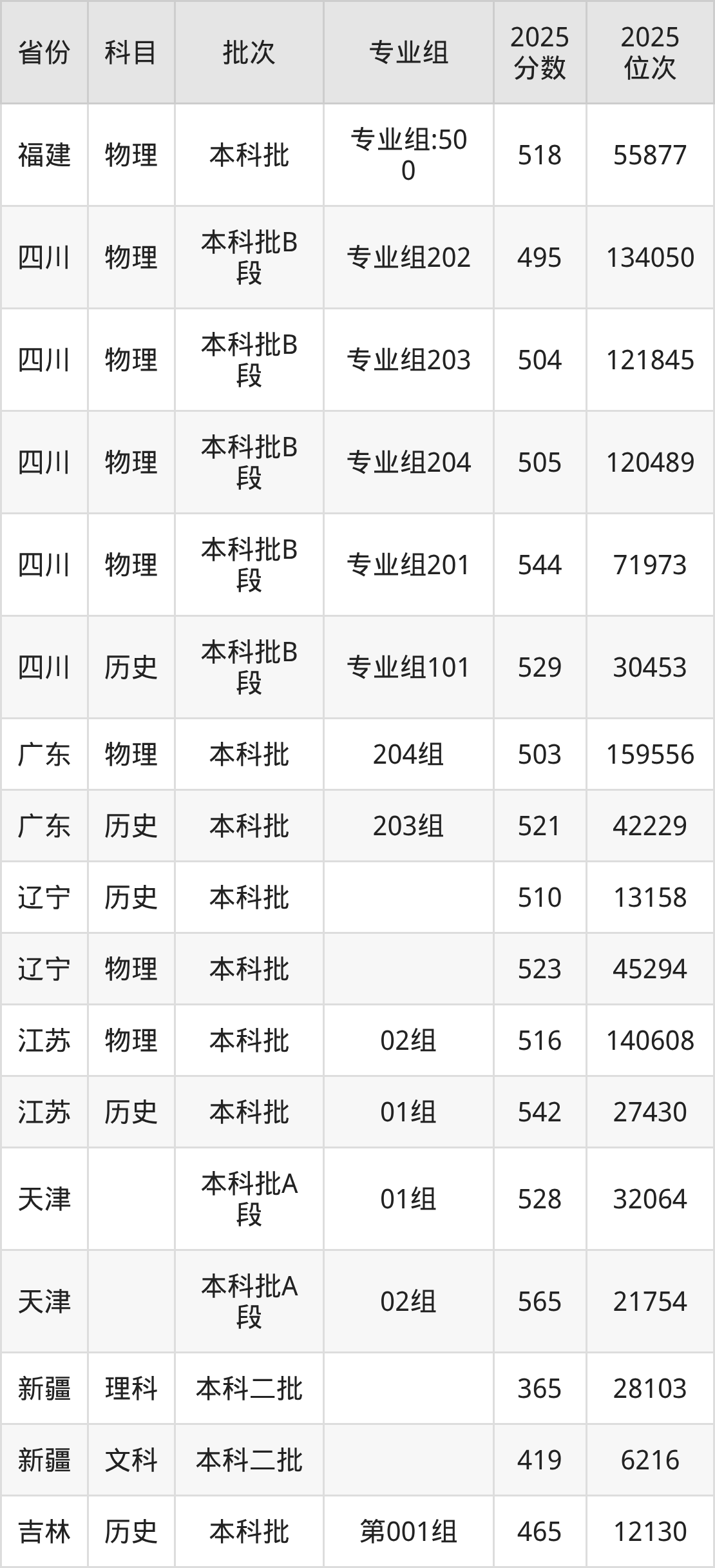 2025年投档录取最低分为514分,录取最低位次为17106名。