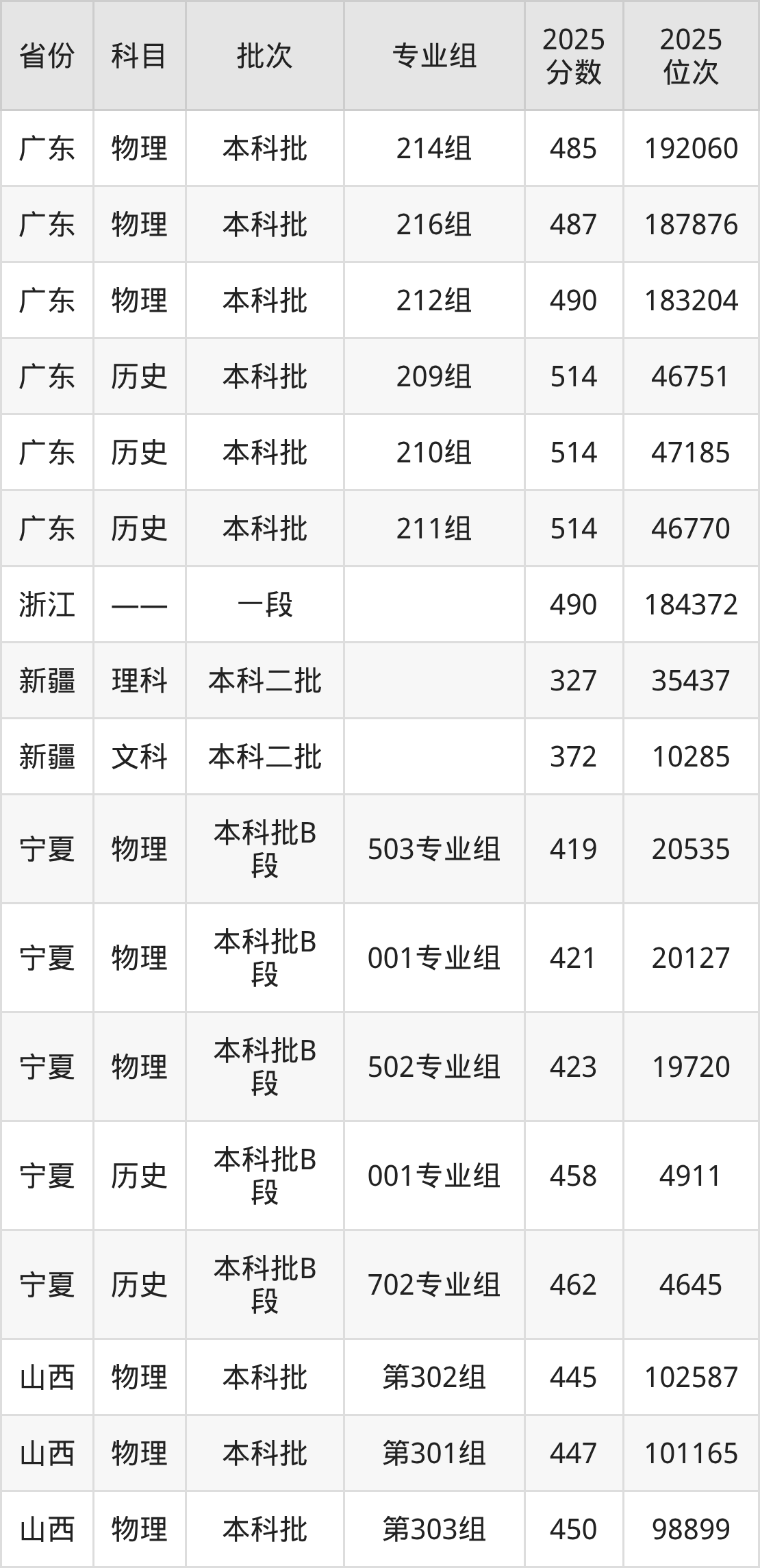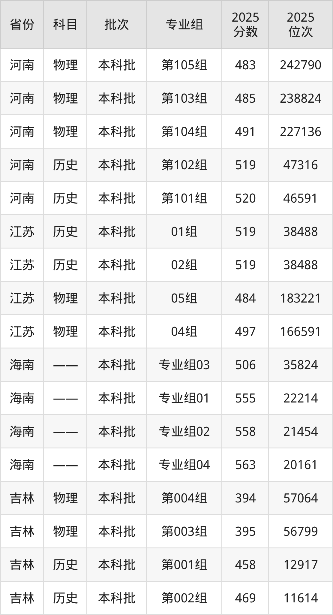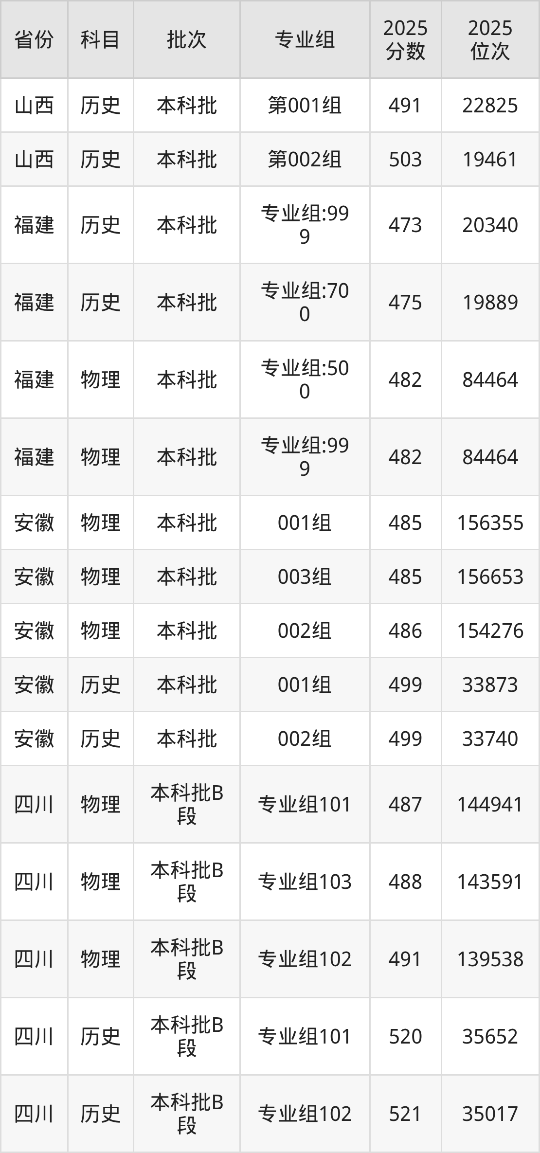 2025年投档录取最低分为494分,录取最低位次为170629名。
