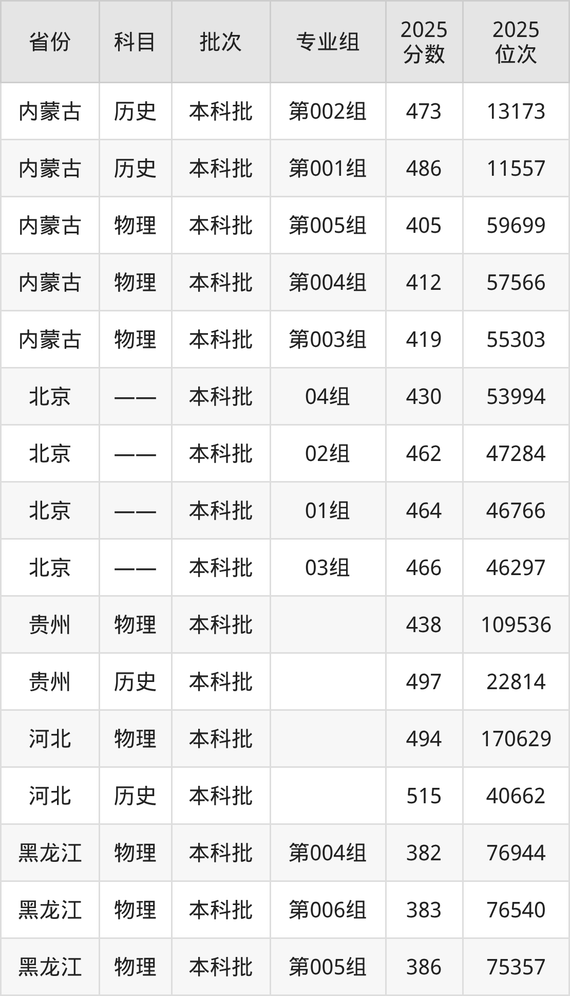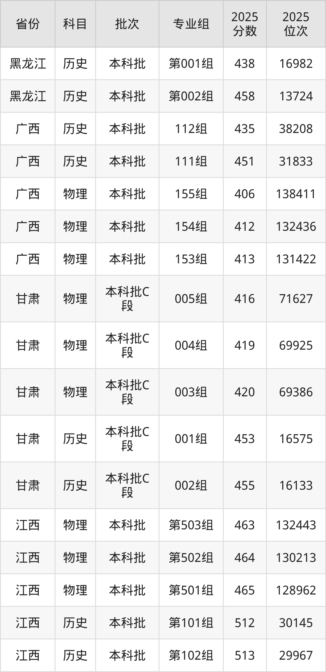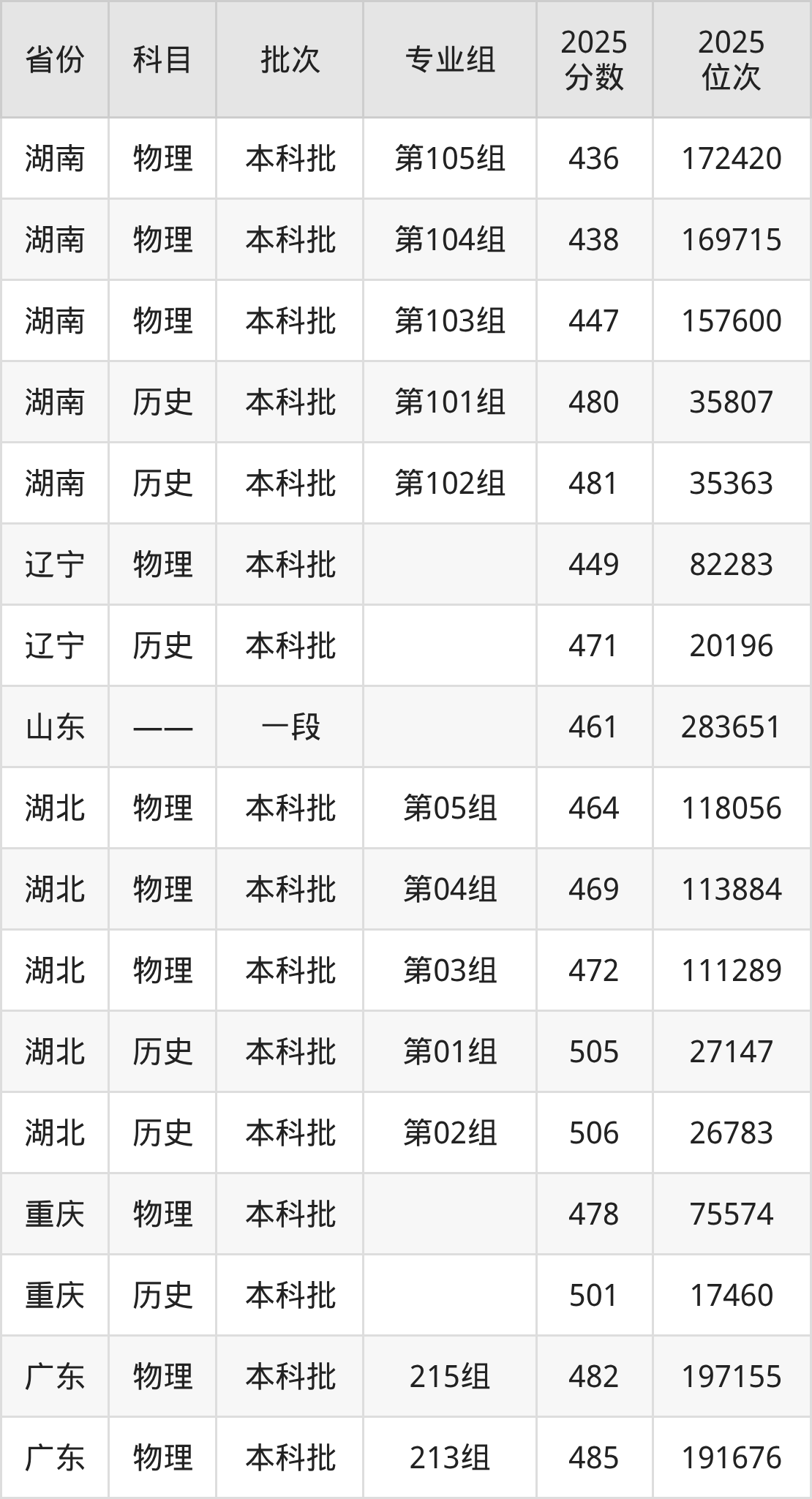 2025年投档录取最低分为494分,录取最低位次为170629名。