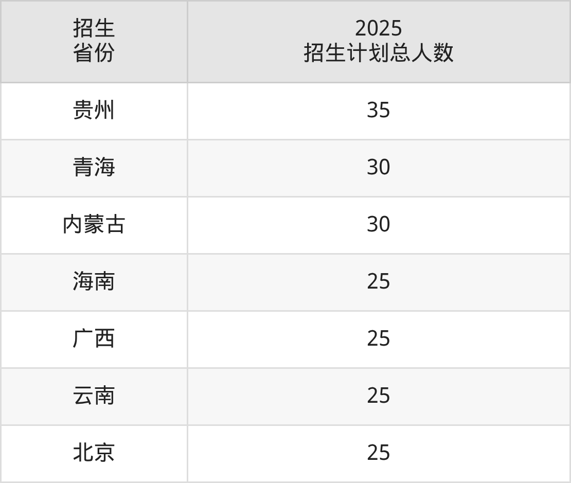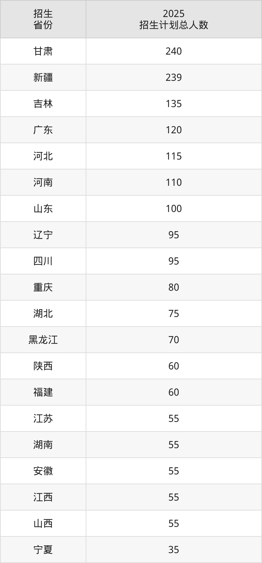 2025年新疆和田学院面向全国27个省市开展本科招生;招生专业共13个,招生人数共2099人。2025年在新疆维吾尔自治区招生计划总人数是239人,其中,新疆和田学院在新疆维吾尔自治区招生人数最多的是中药学。新疆和田学院在各省具体招生人数情况如下表。