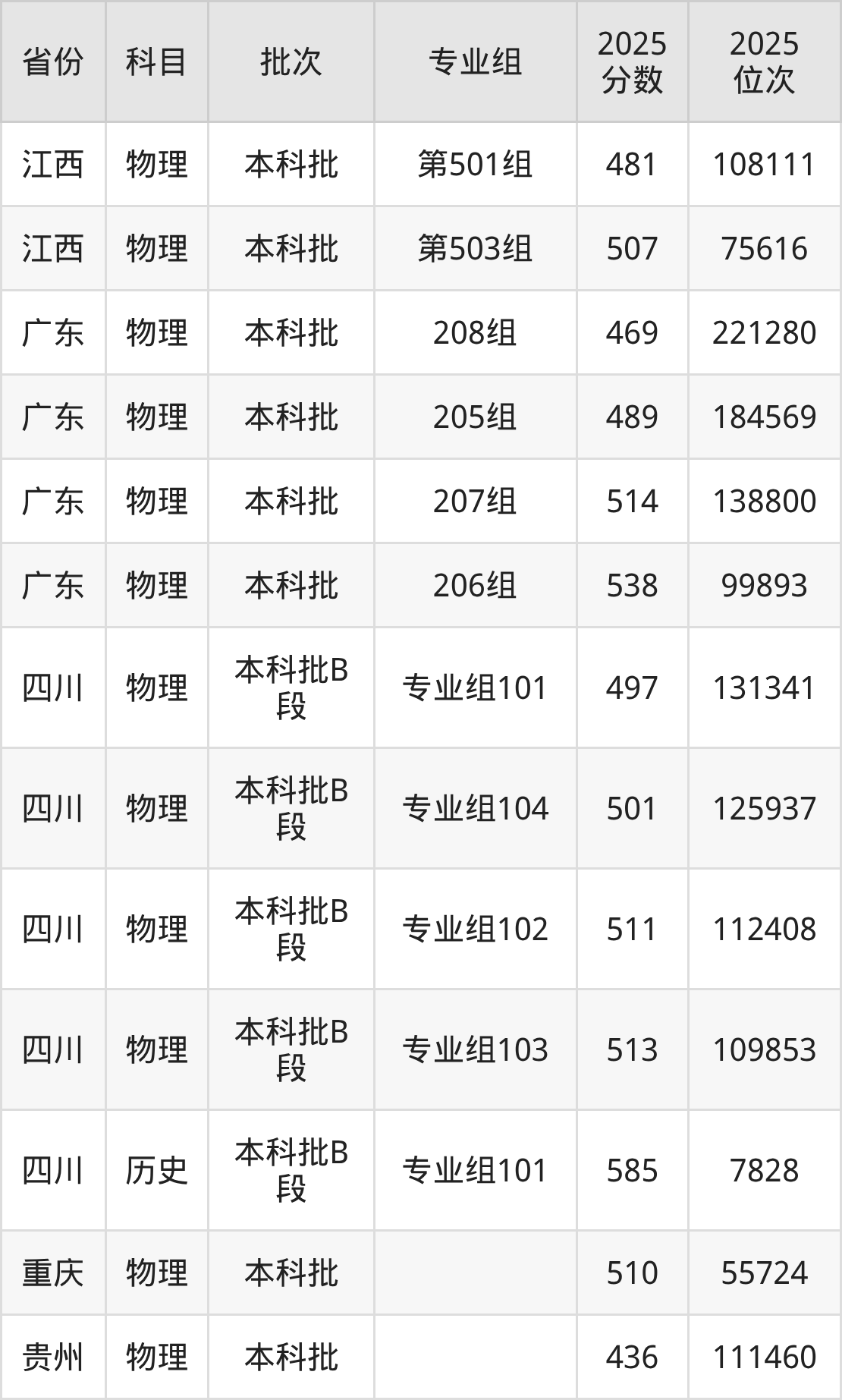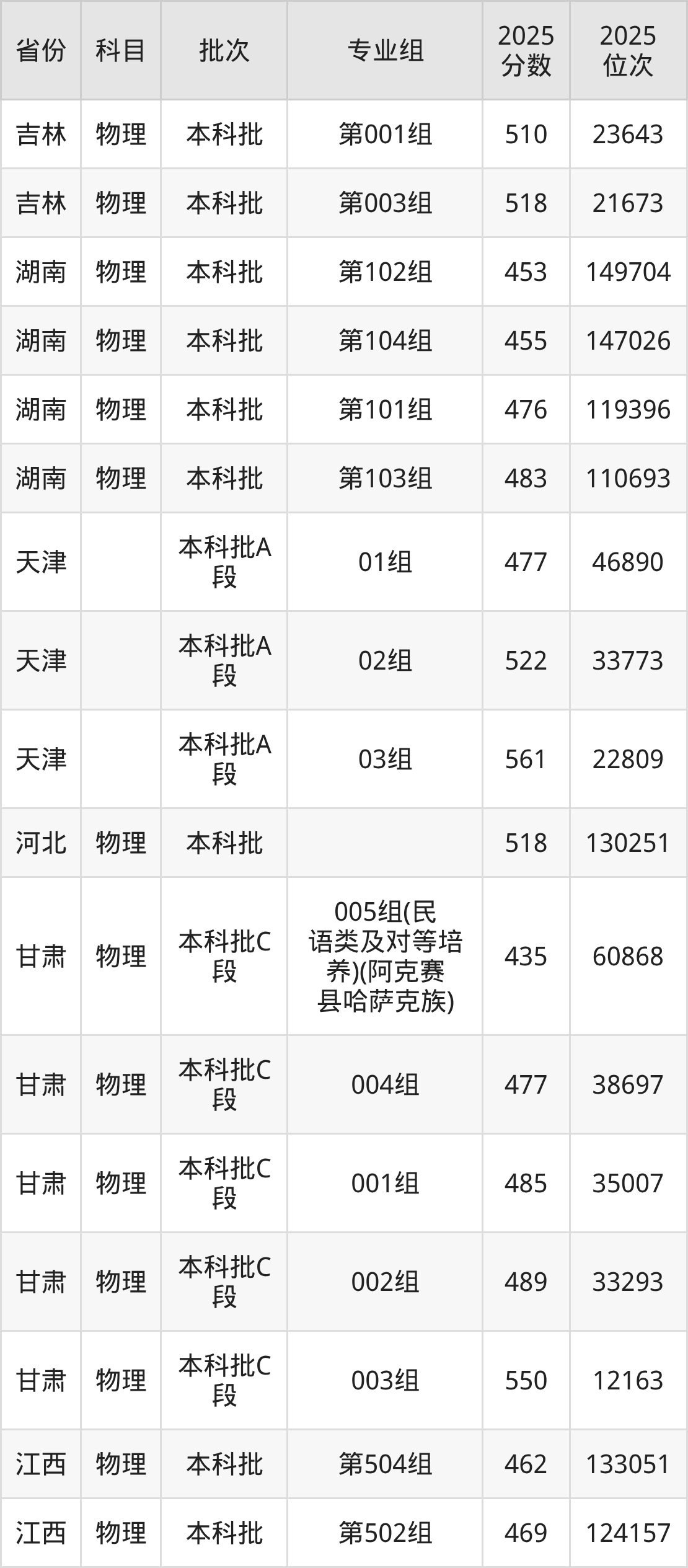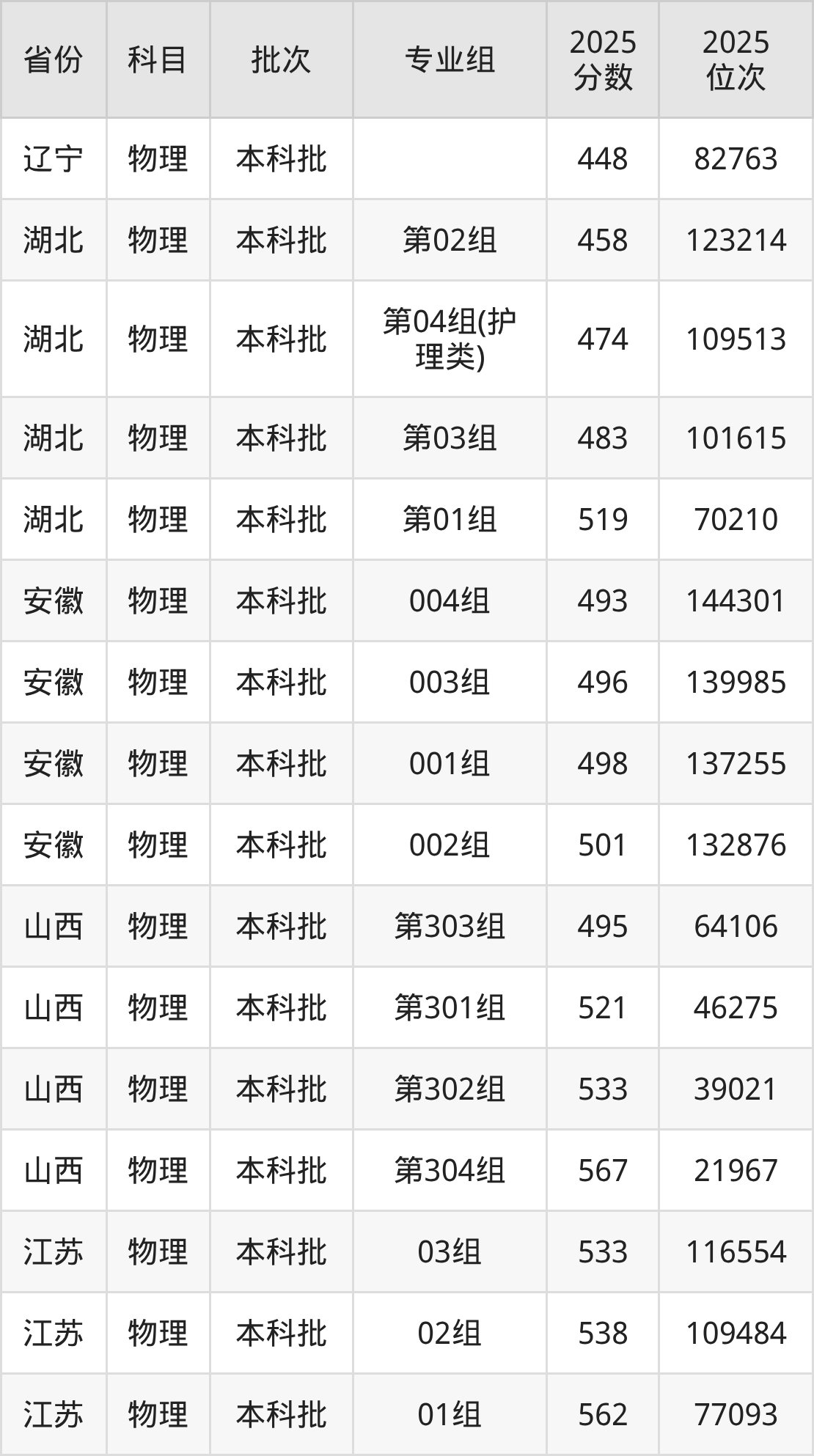 2025年在本科物理类进行招生,各专业组分数线详情如下:
