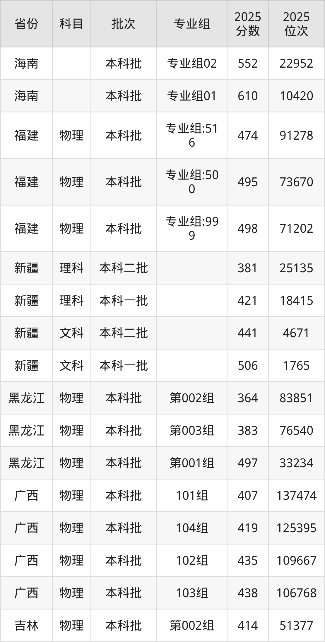 新疆医科大学001组:2025年投档录取最低分为498分。