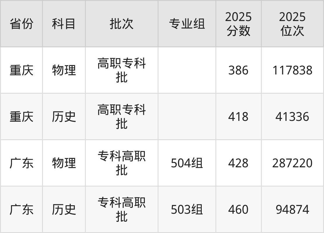 广西卫生职业技术学院504组:2025年投档录取最低分为428分,录取最低位次为287220名。