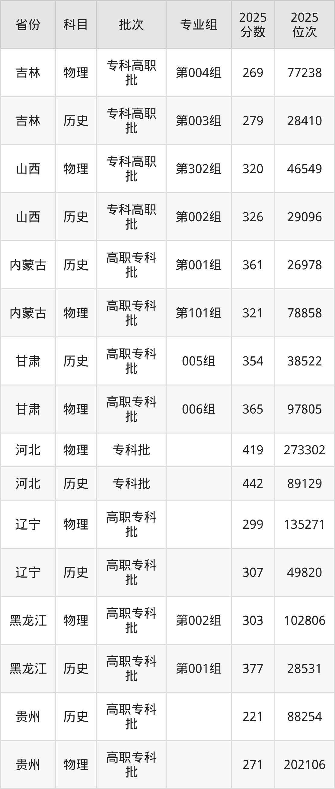 下面是2025年滨州职业学院全国录取分数线一览表,请查阅。