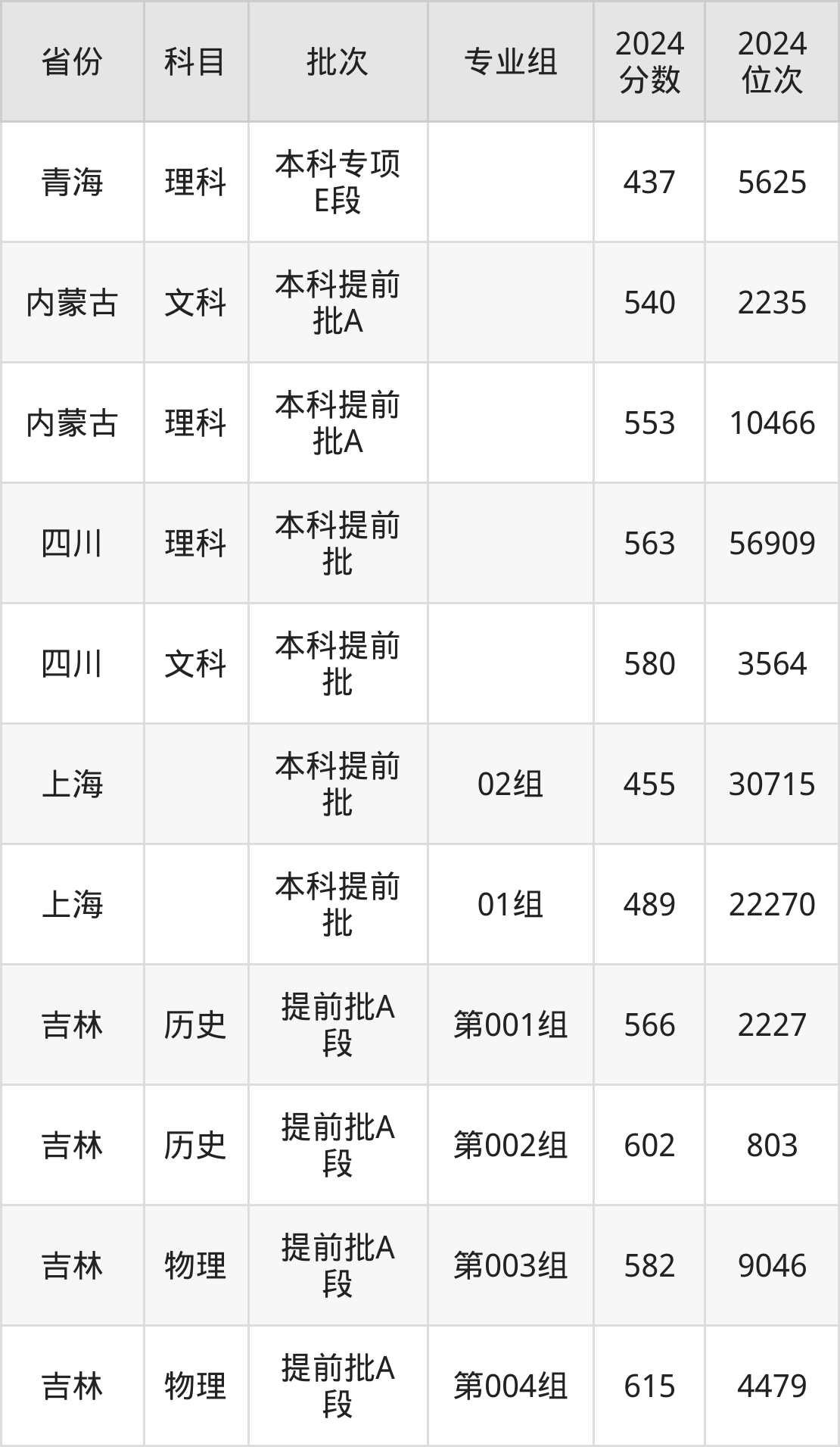 2024年中国刑事警察学院全国录取分数线是437分到615分,录取最低在青海理科、录取最高在吉林物理类(第004组)。各省各专业组最低分具有差异,详情如下: