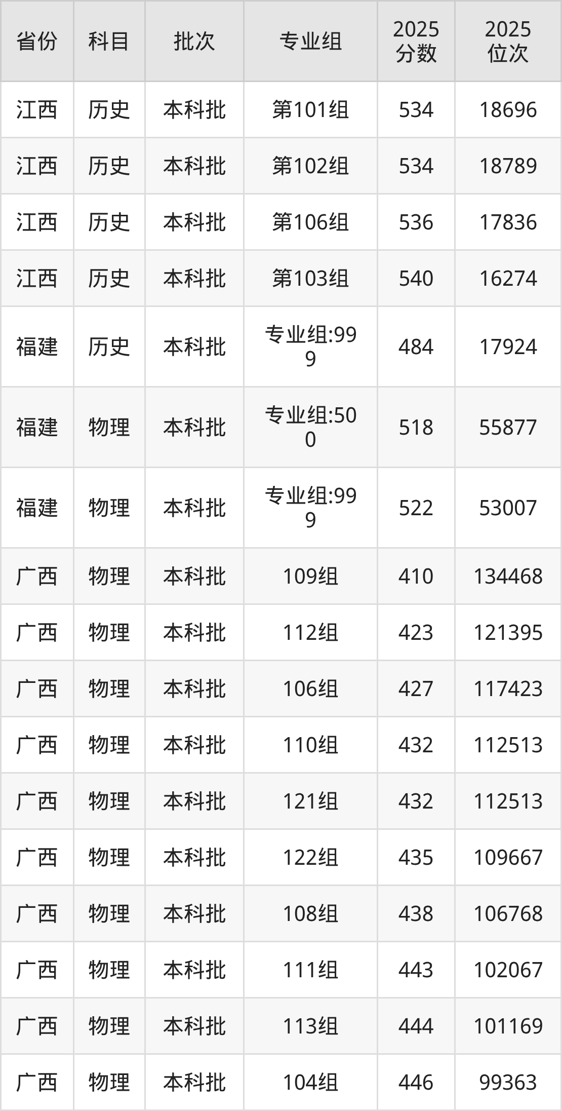 普通类本科物理类最低444分,本科历史类最低497分