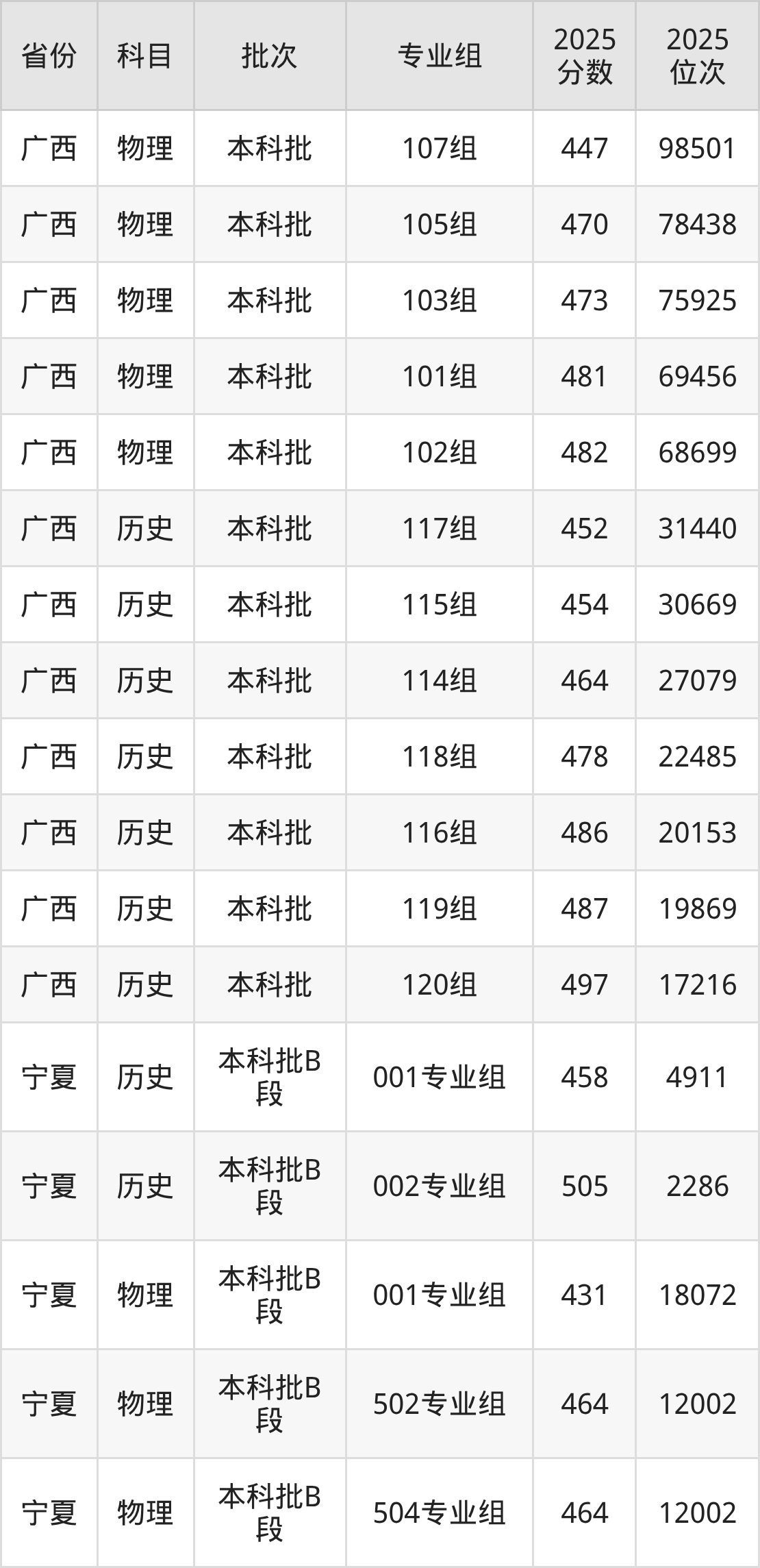 普通类本科物理类最低431分,本科历史类最低458分